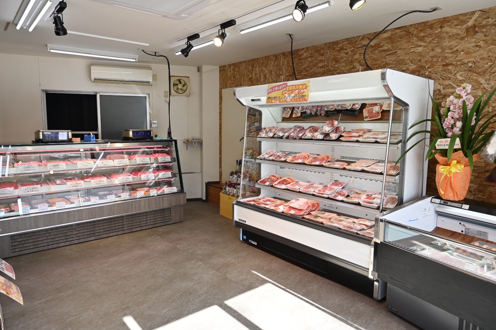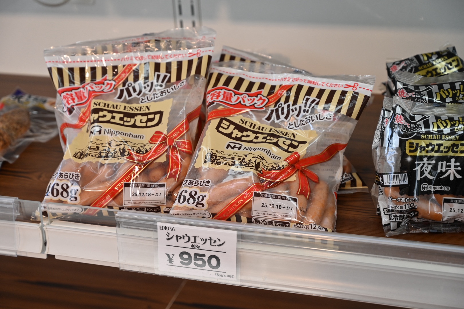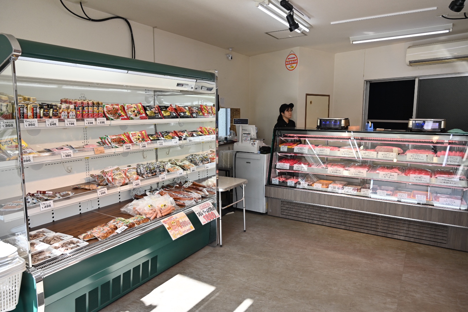 左のショーケースにはウインナーやソースなどの加工品がメイン。