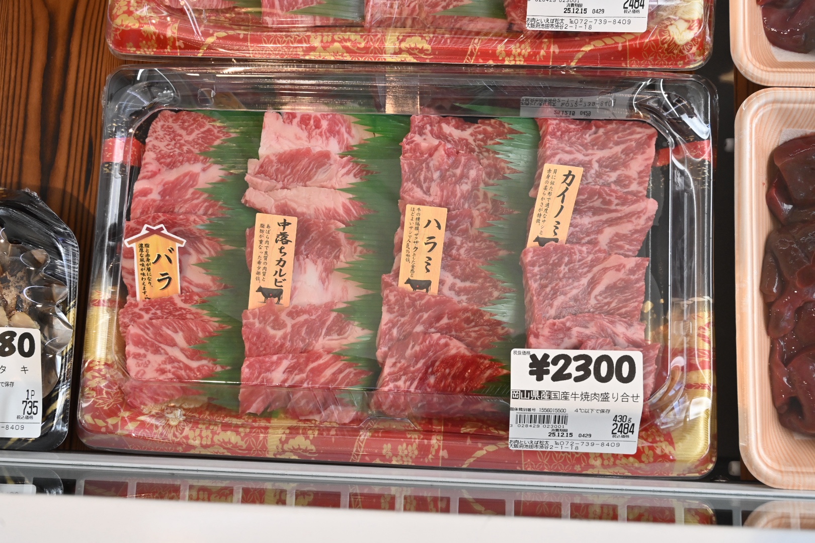 国産牛焼肉盛り合わせ 430g 2300円。