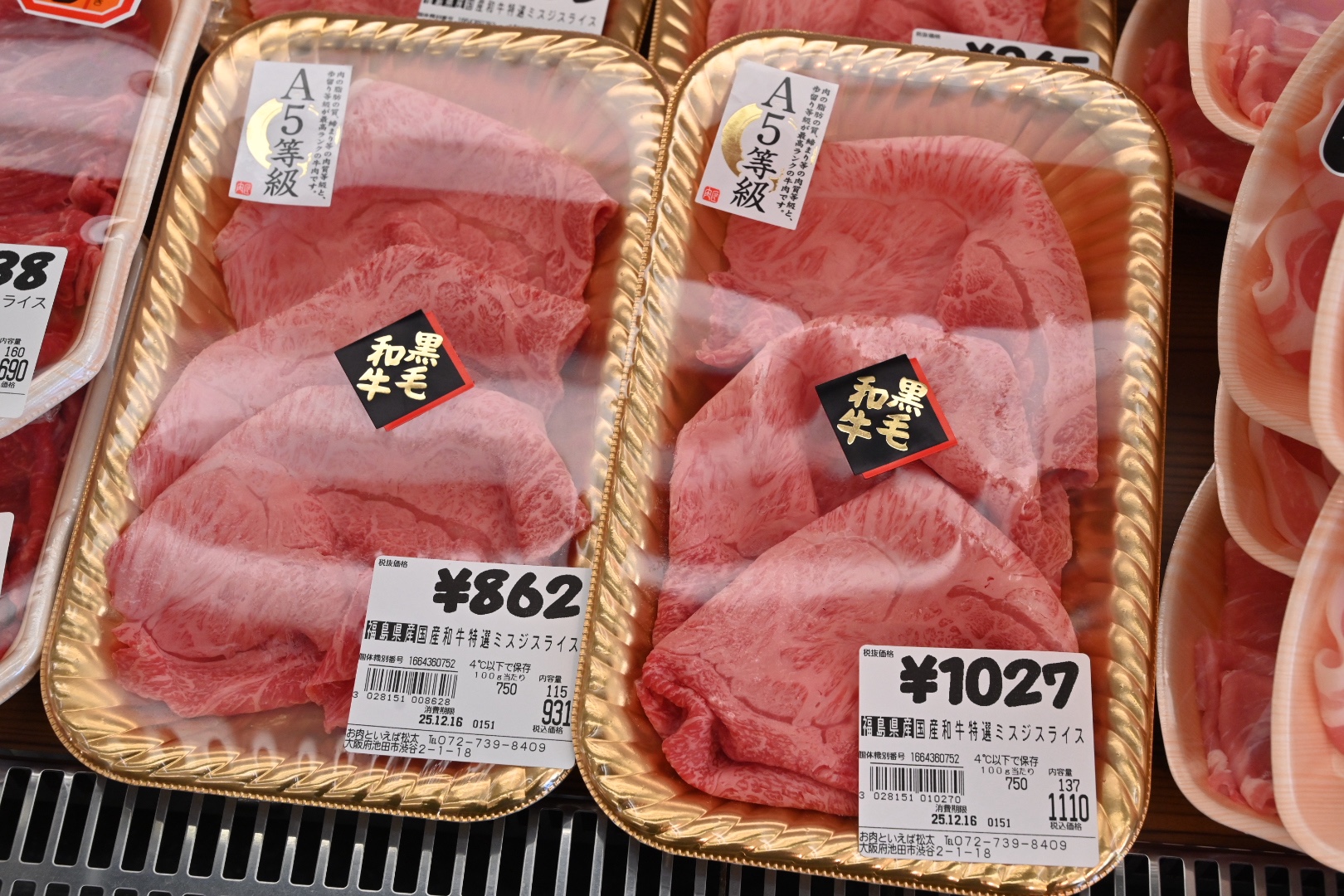 国産和牛特選ミスジスライス 100g 750円。