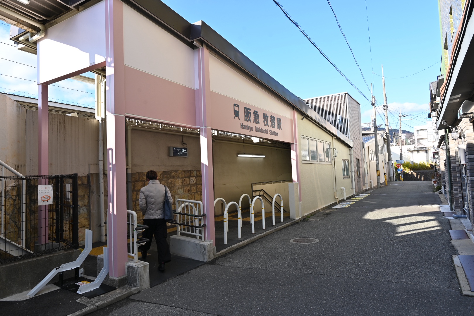 牧落駅東口を出て、目の前のお店が目的地です。