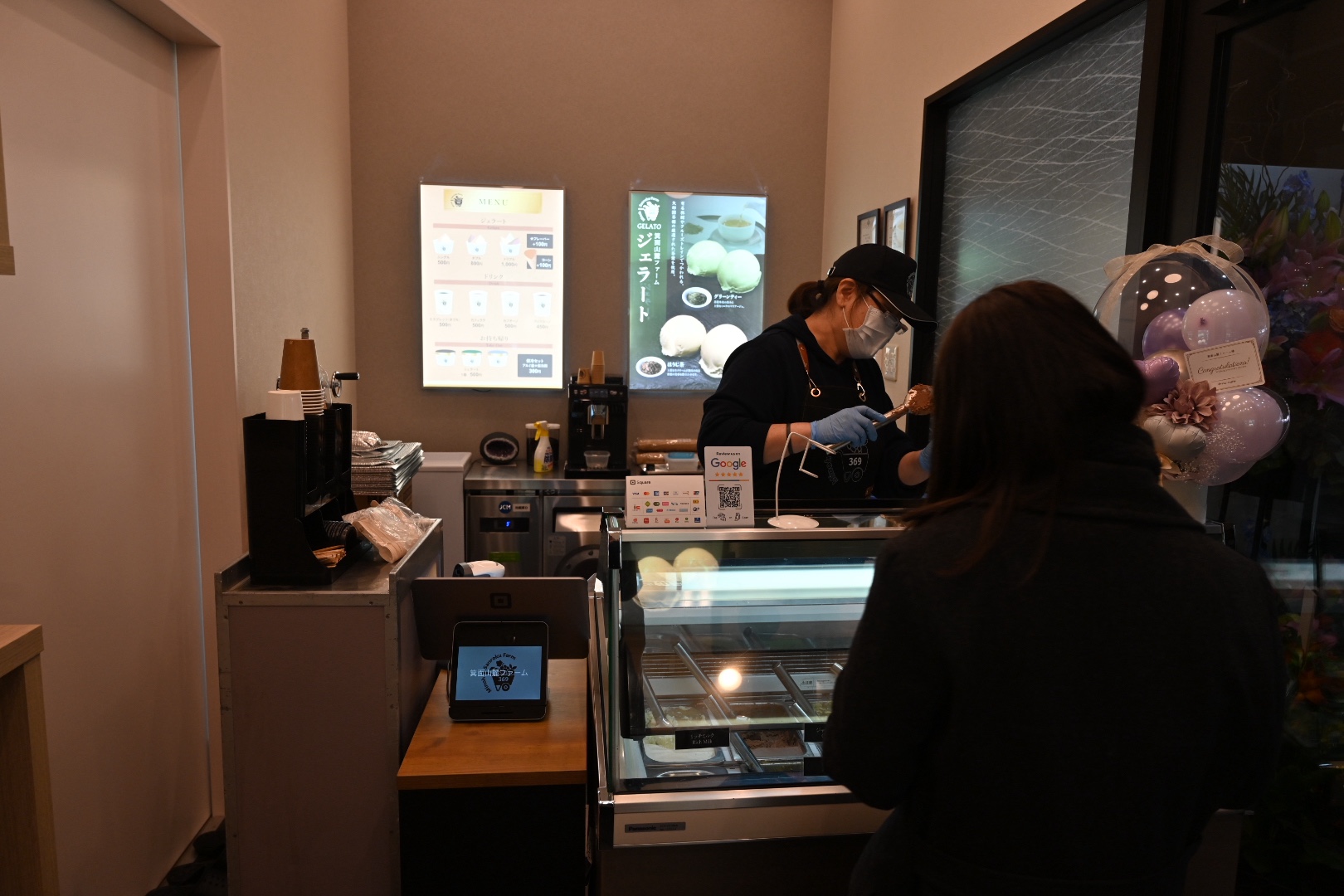 で、右側がジェラートが置いてあって、注文カウンターになっています。