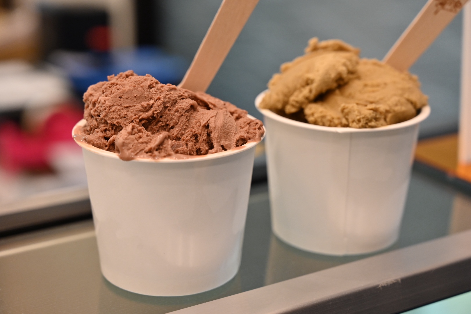 ジェラート屋さんあるあるで、試食をさせてくれます。