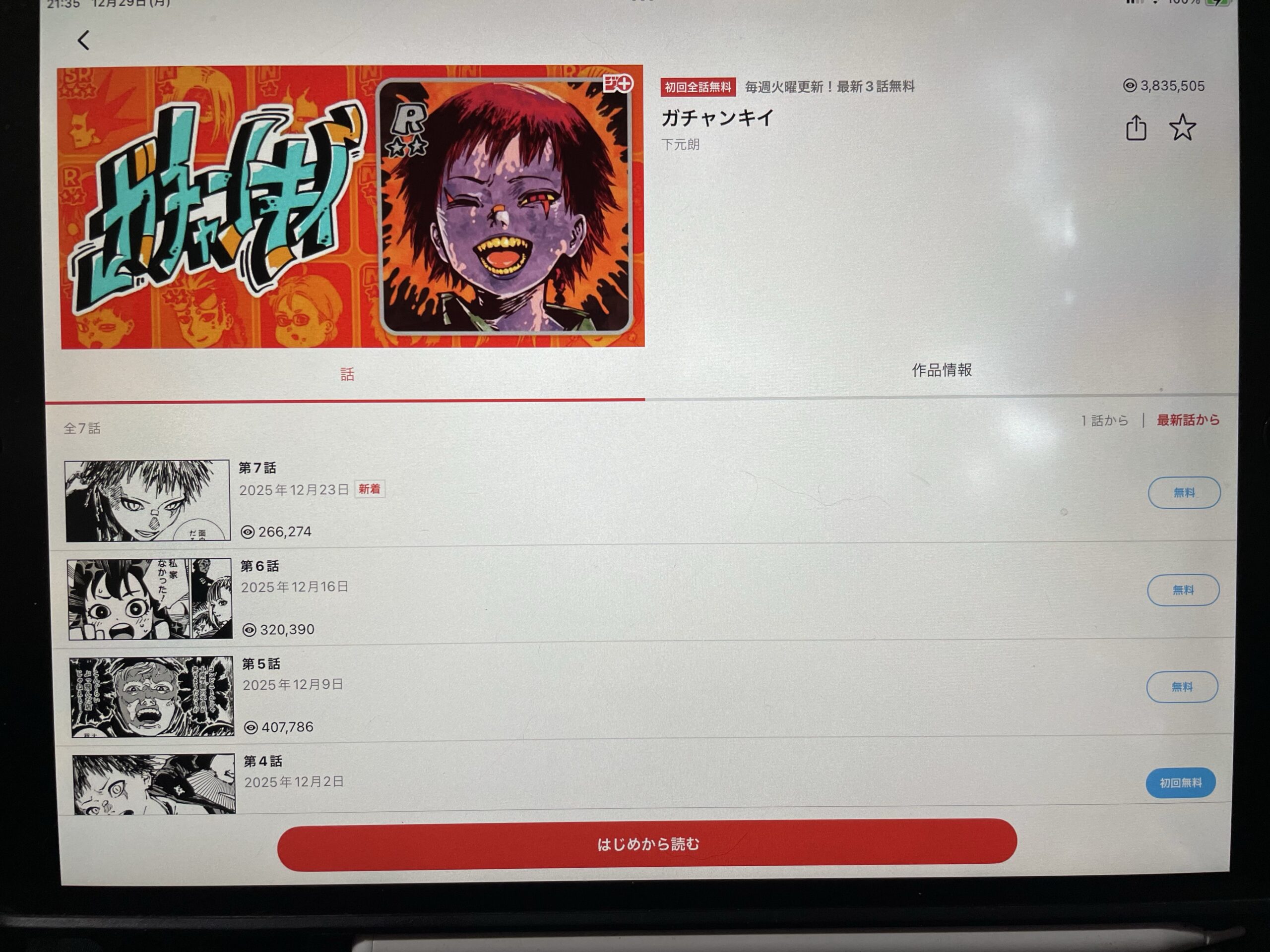 という事で、まずはジャンプ+を開いて作品を見てみます。