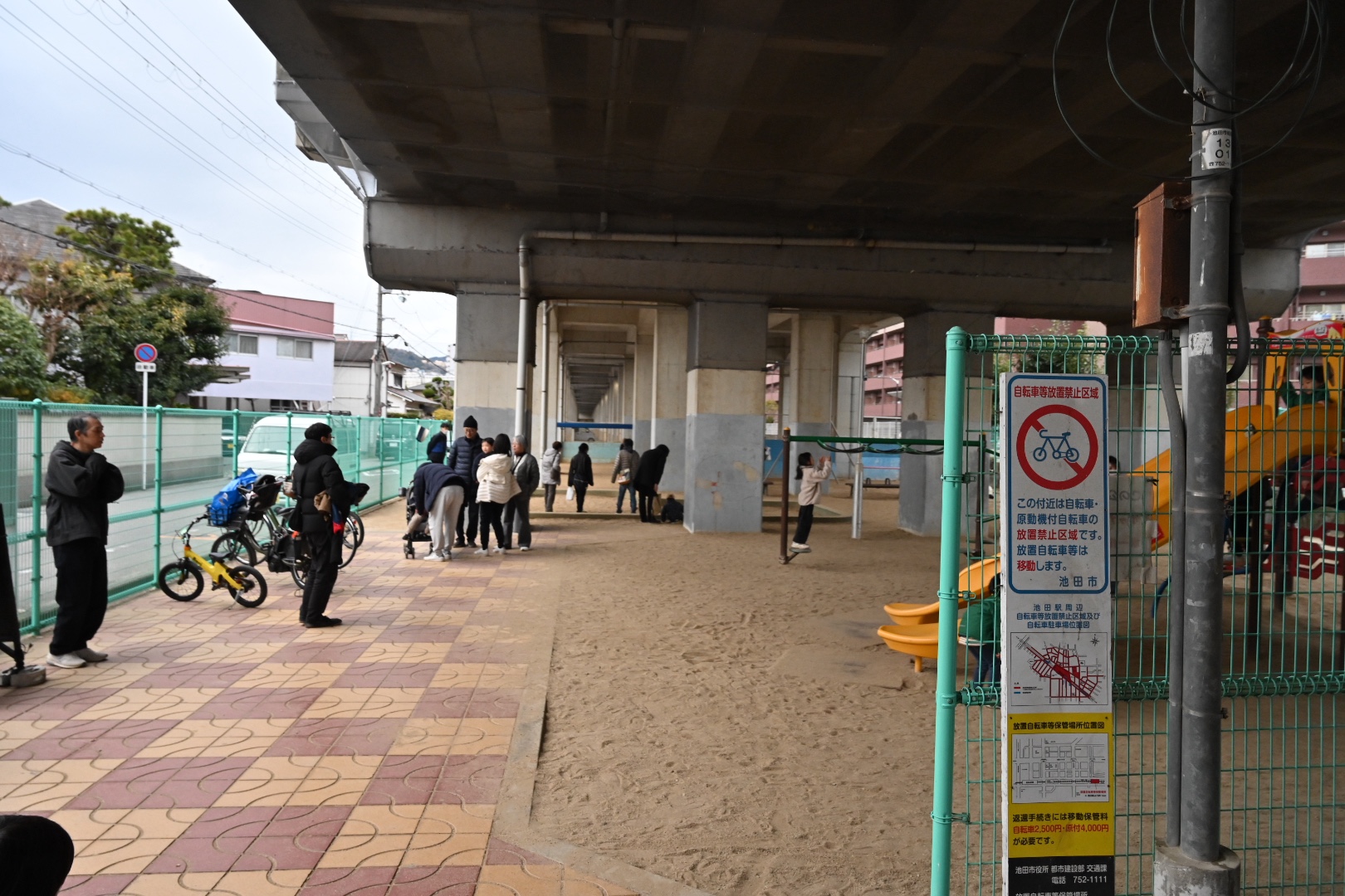 線路高架下の公園では、きゃっきゃと遊ぶ子供たちの姿。