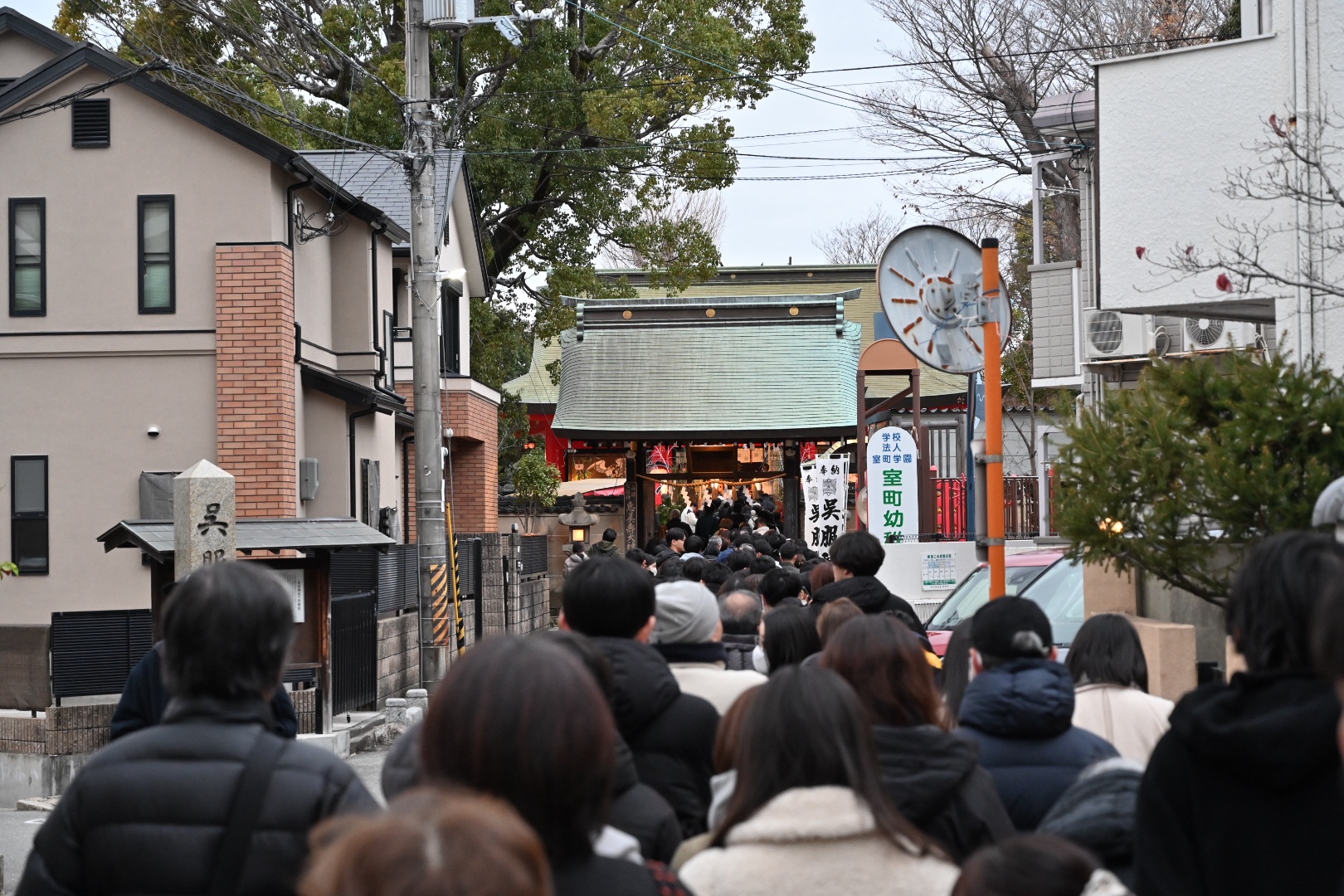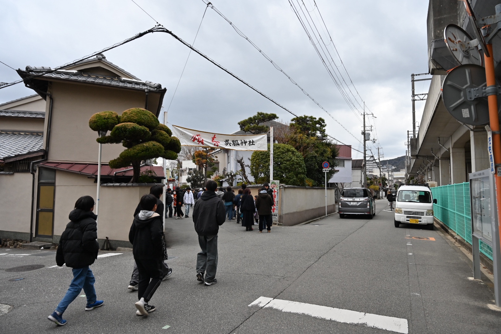1. 元旦、初詣で賑う呉服神社の様子。参拝までの待ち時間も分かります。