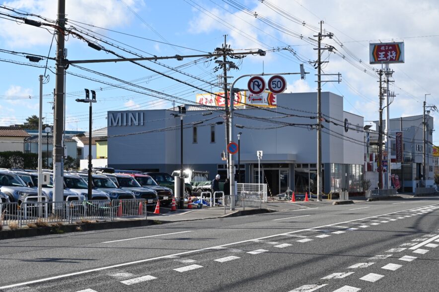 現地ではすでに建物が出来上がっていて、MINIのロゴもついてます。