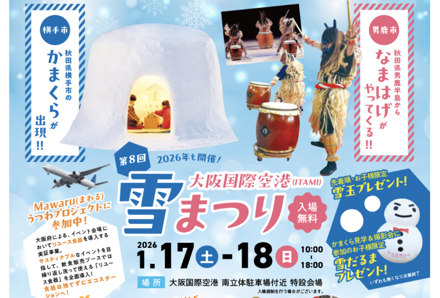 1/17(土)18(日)、大阪国際空港で「第8回大阪国際空港 雪まつり」が開催されるようです!