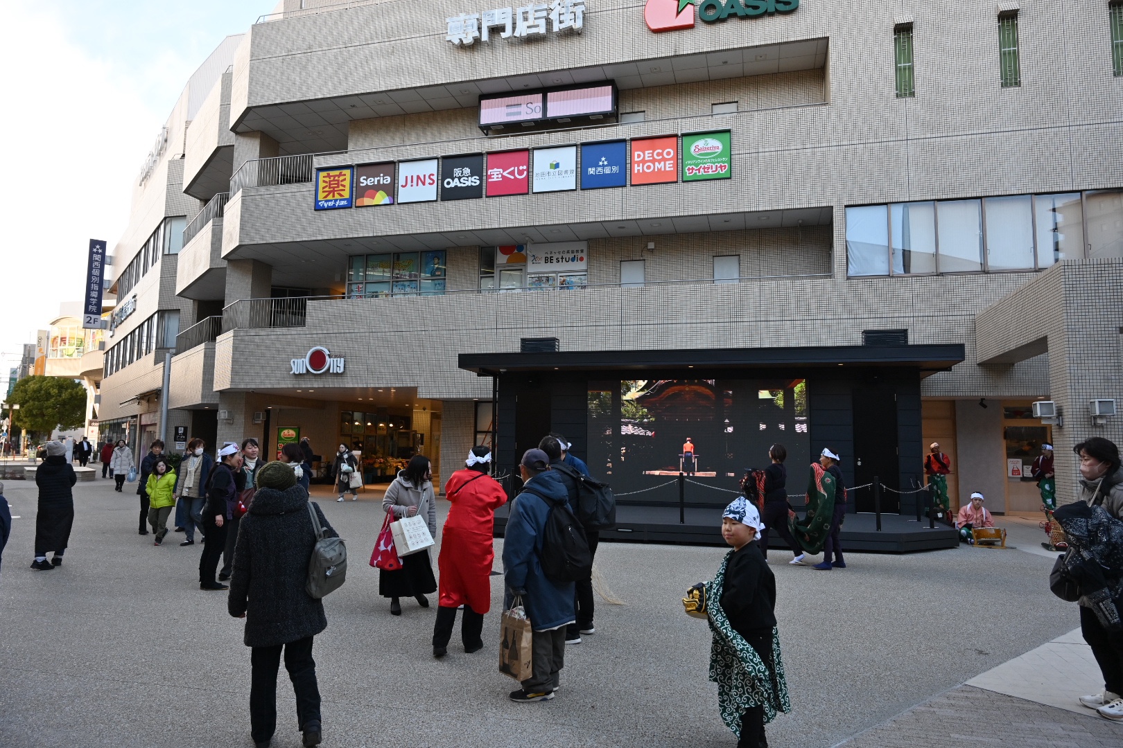 IKEDIA前では獅子舞が登場し、頭を噛んでもらう人がたくさん。
