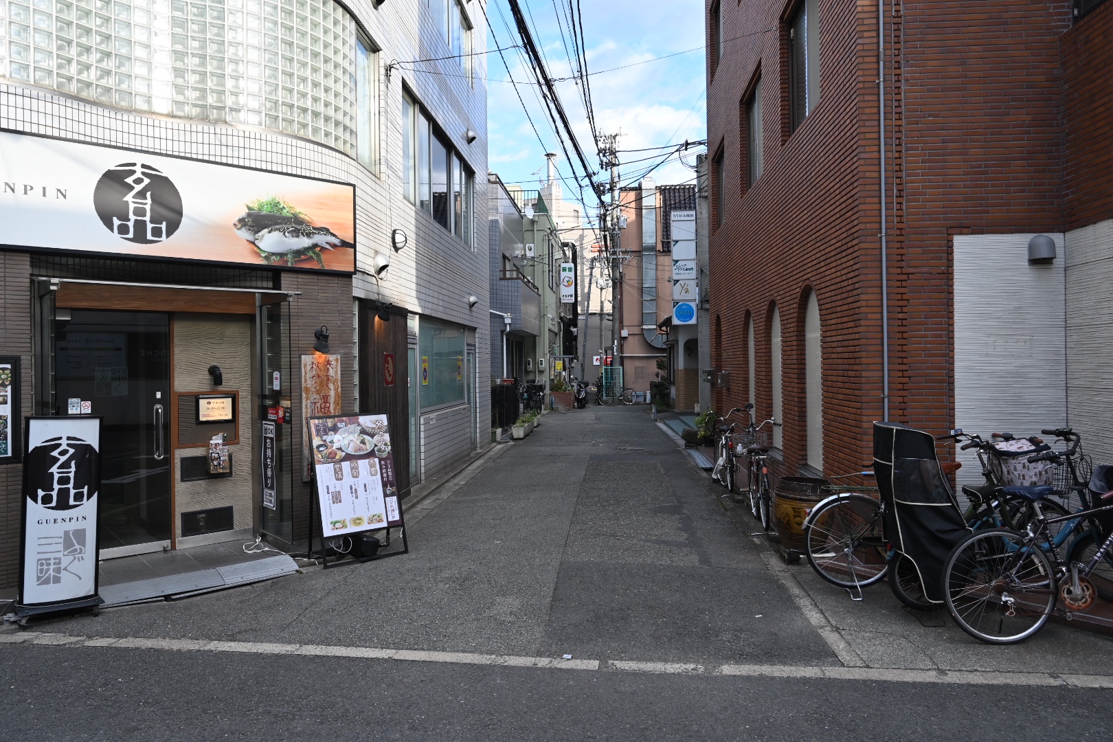 玄品と茶色のビルの間を奥に進みます。