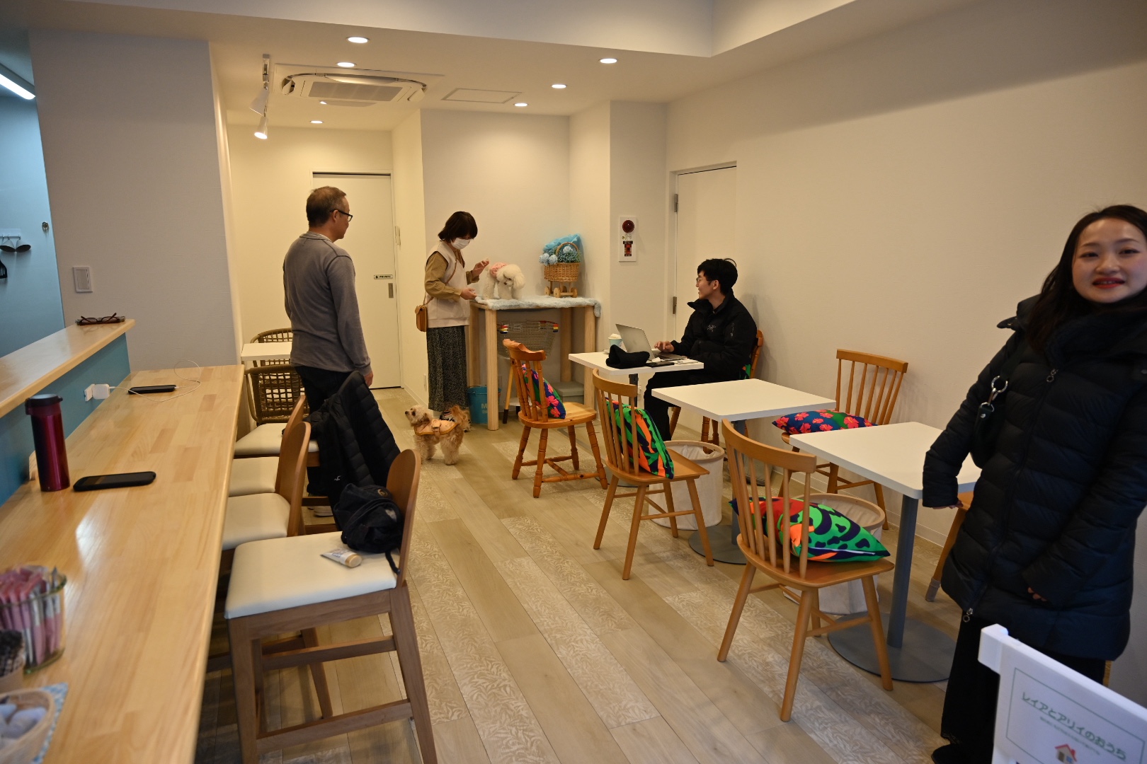 けーたろーの感触では、お店の空間がそれほど広い訳ではないので、隣の席のワンコと仲良くできるめっちゃいい子なら大丈夫だと思いました。