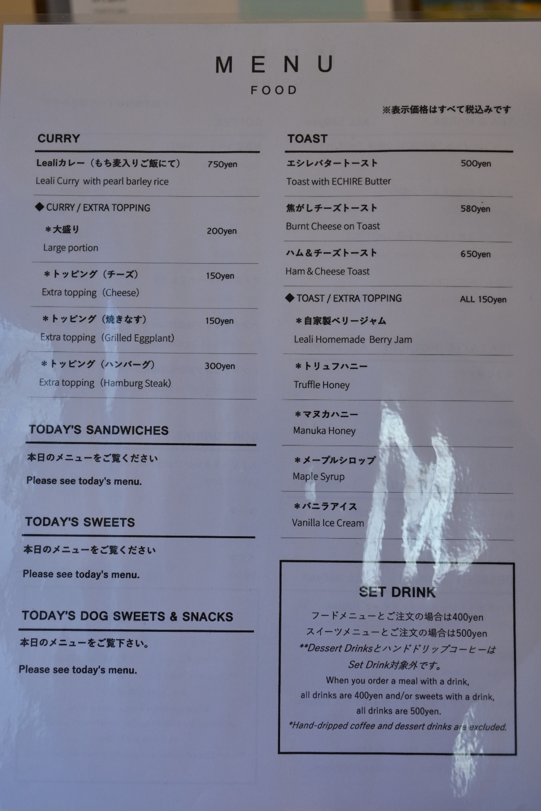 ちなみにウチにはラブラドールレトリバーのマリン(29kg)がいるので、大型犬でも入店が大丈夫かを知るべく来たんですが、お店の方は「おっきい子でも大丈夫です!」との事でした。