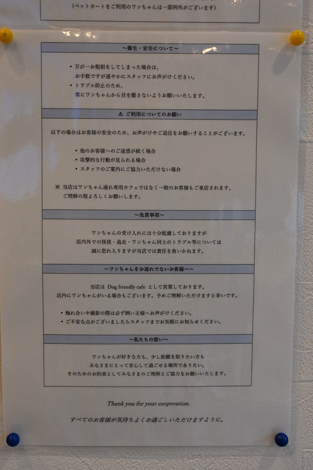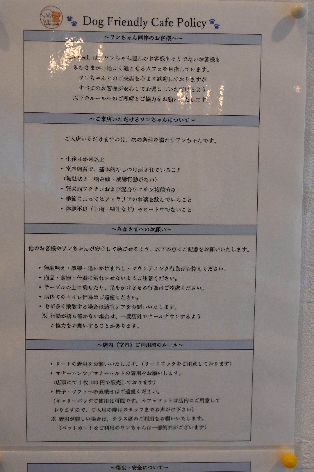 こちらはワンちゃん同伴時のルール①。
