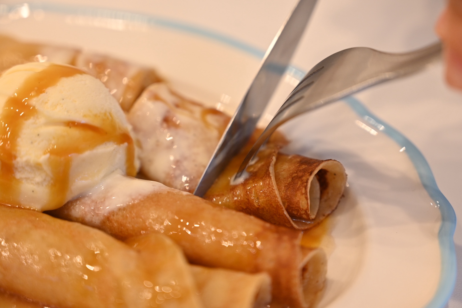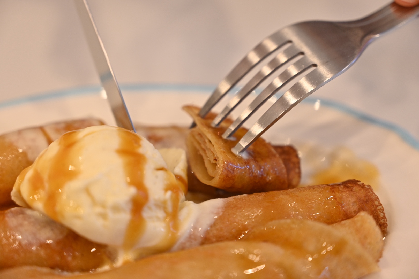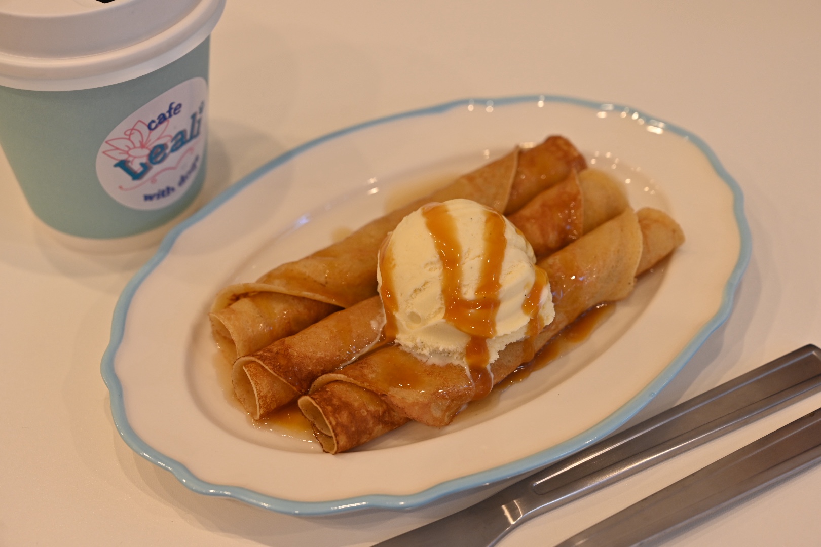 くるくる巻いたクレープの形状は、ハワイのホテルで提供されているのを知って、お店でもやっているそう。