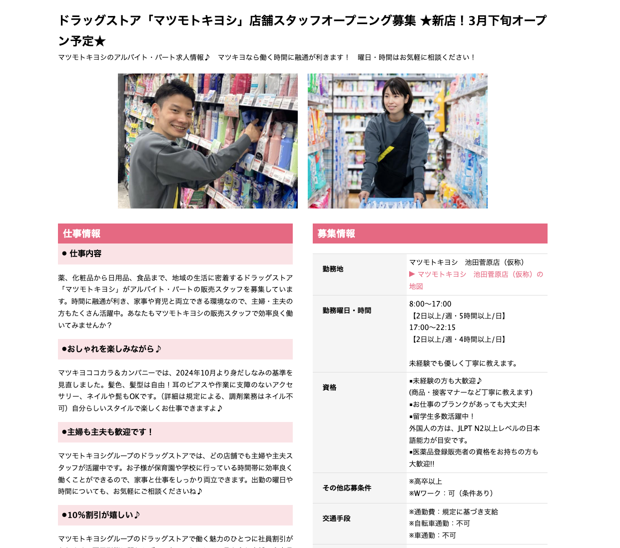 マツキヨの求人情報によると、お店は3月下旬オープン予定。
