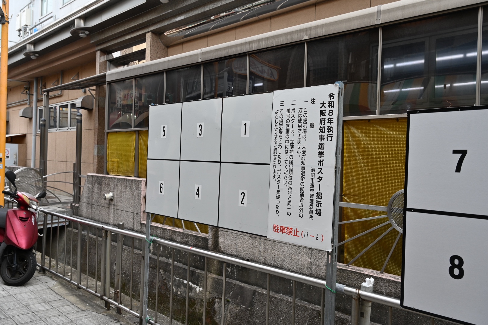 おっと、ABCラッキーセンターの横には、なんでやるのかまったく意味不明な大阪府知事選挙ポスター掲示場が設置されていますね。