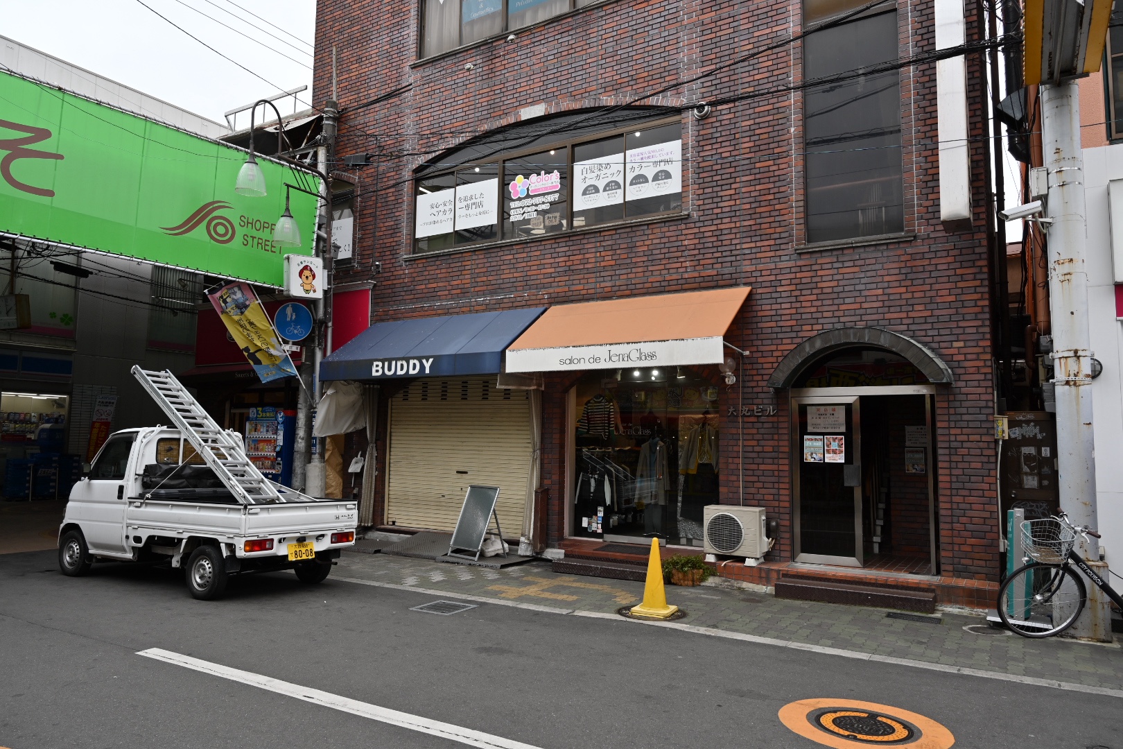正面に石橋阪大前駅がありますが、その右手のビルが現地です。