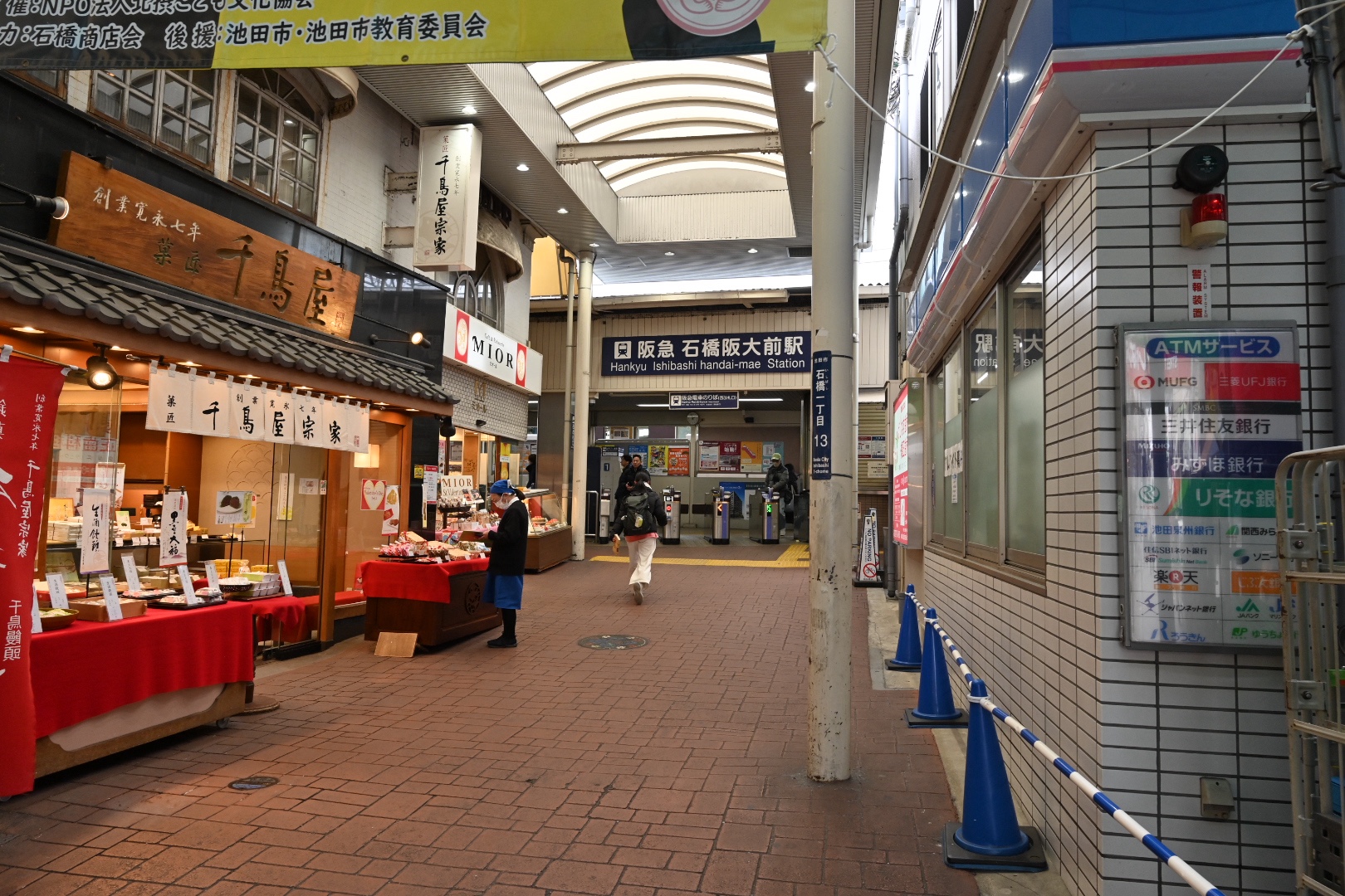 すぐ側には、阪急石橋阪大前 西改札口があります。