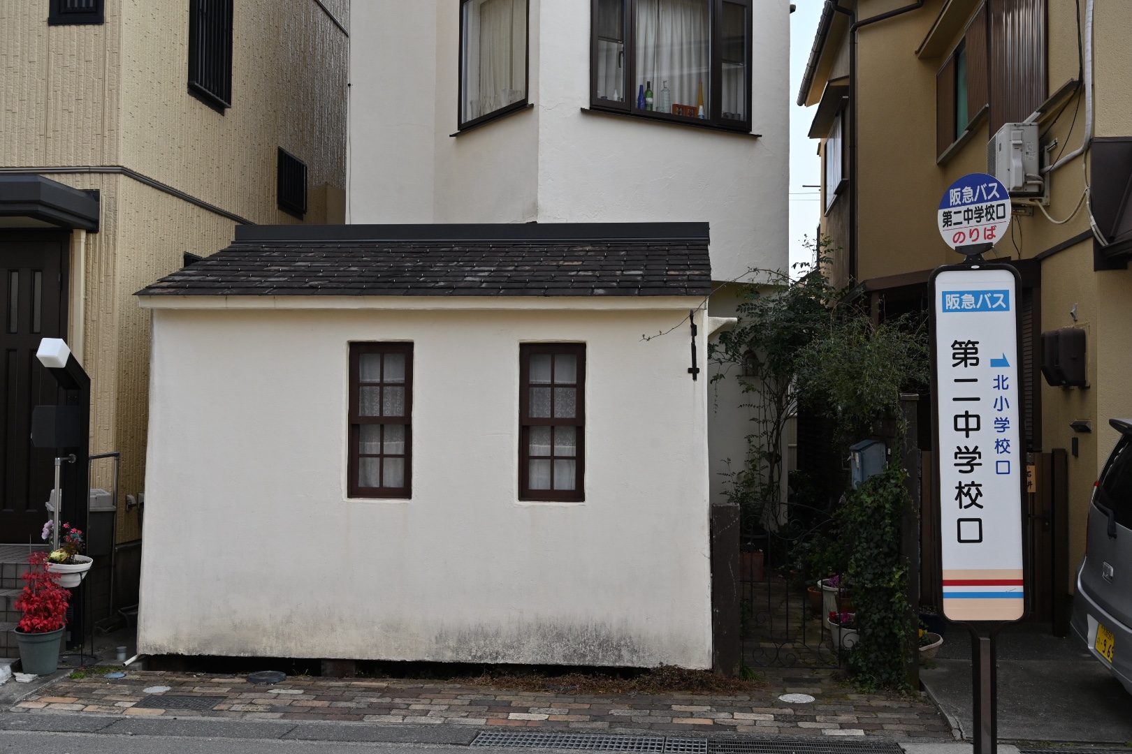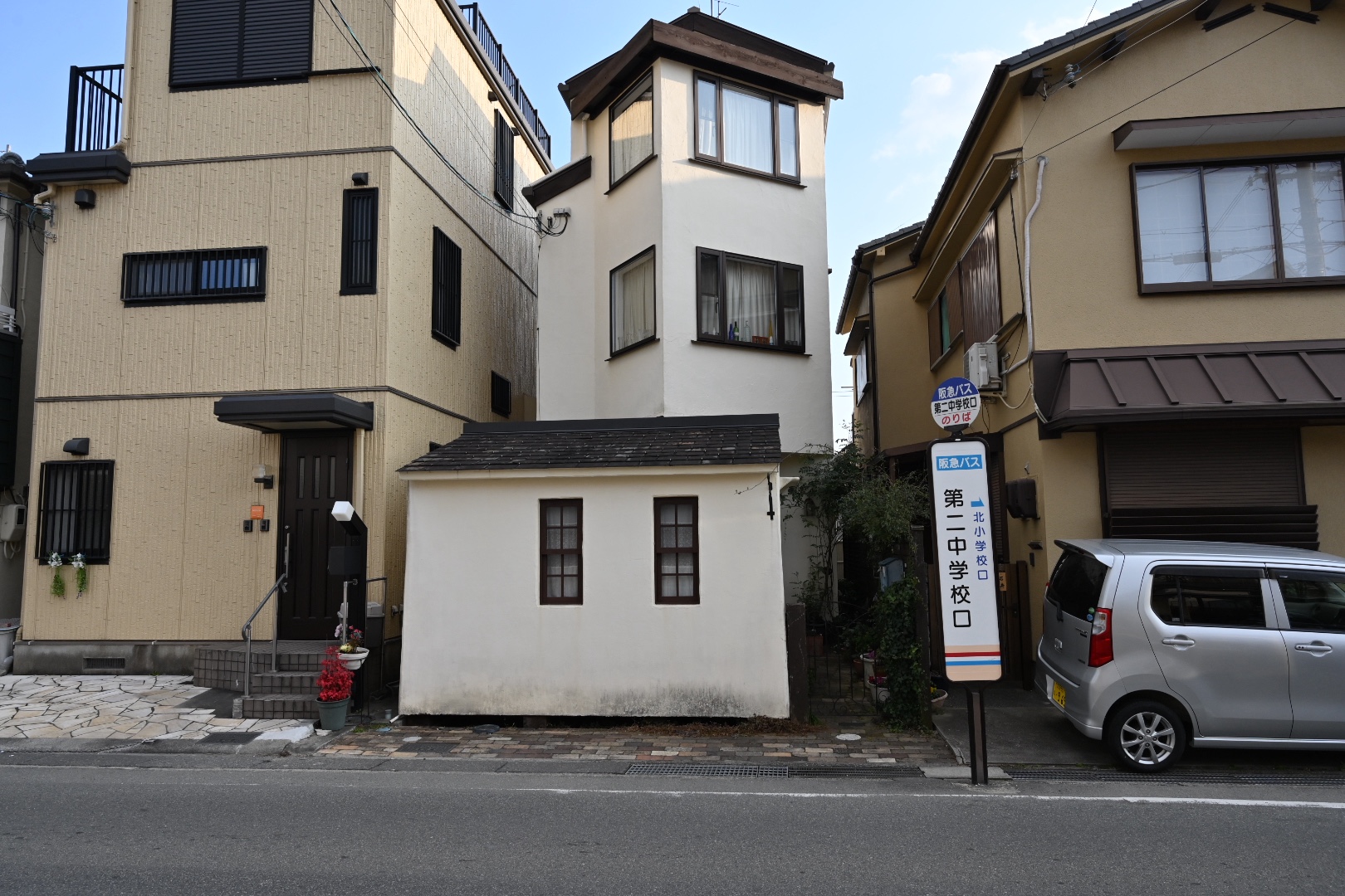 第二中学校口のバス停の目の前の、この白いお家がお店のできる場所です。