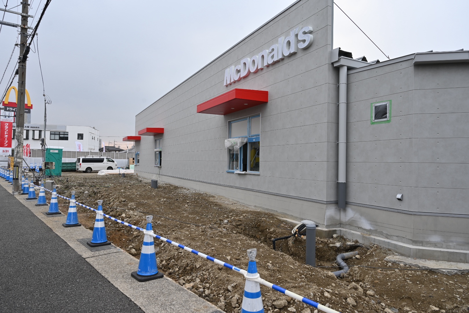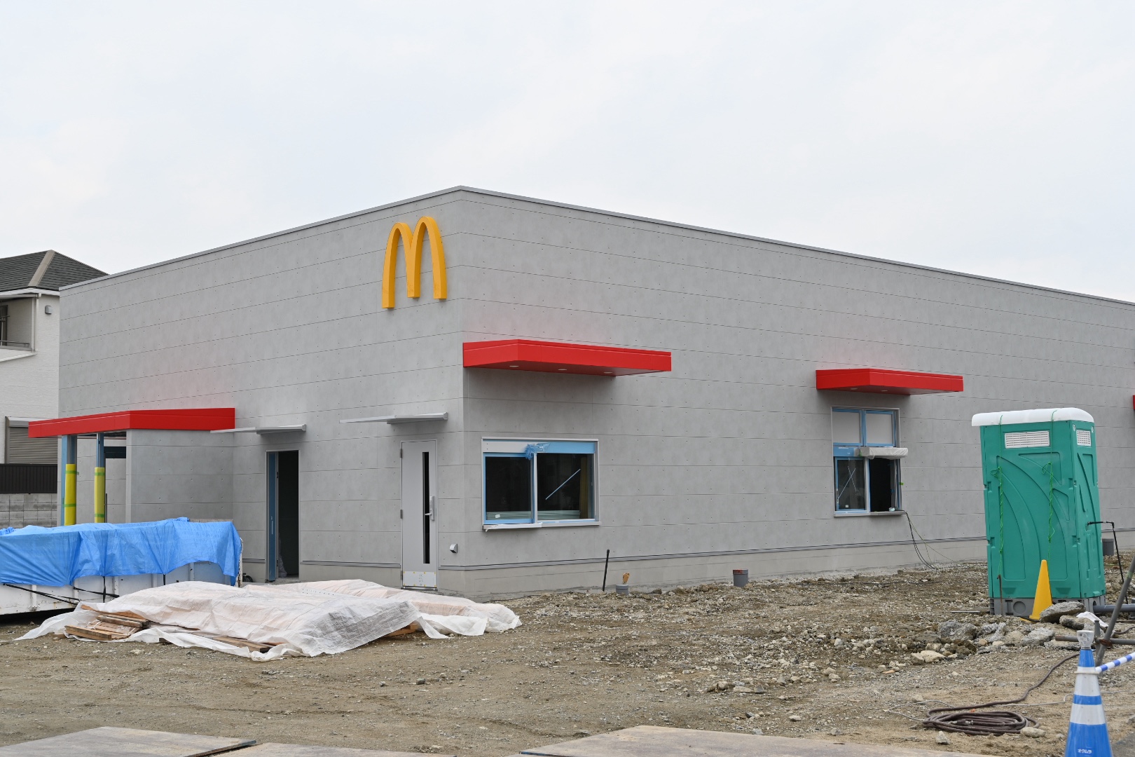 3月31日、牧落にマクドナルドがオープンする事をお知らせしましたが、外観が大分出来上がってきたので、その様子をお届けします!