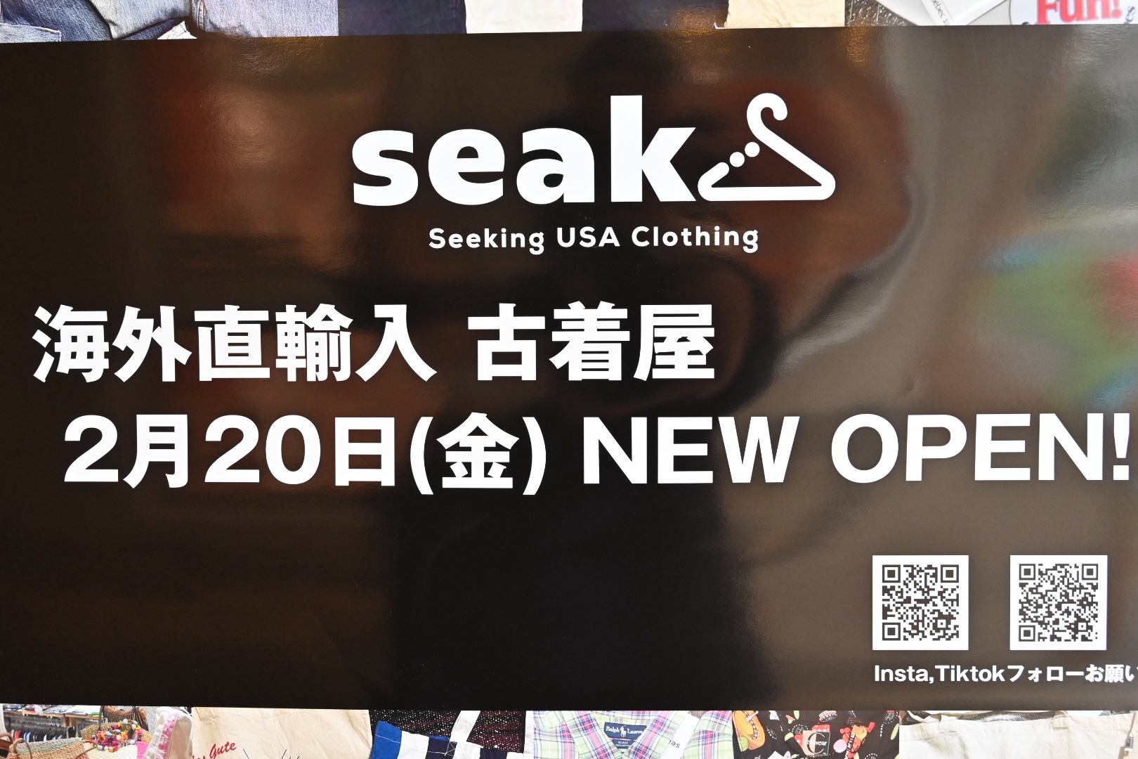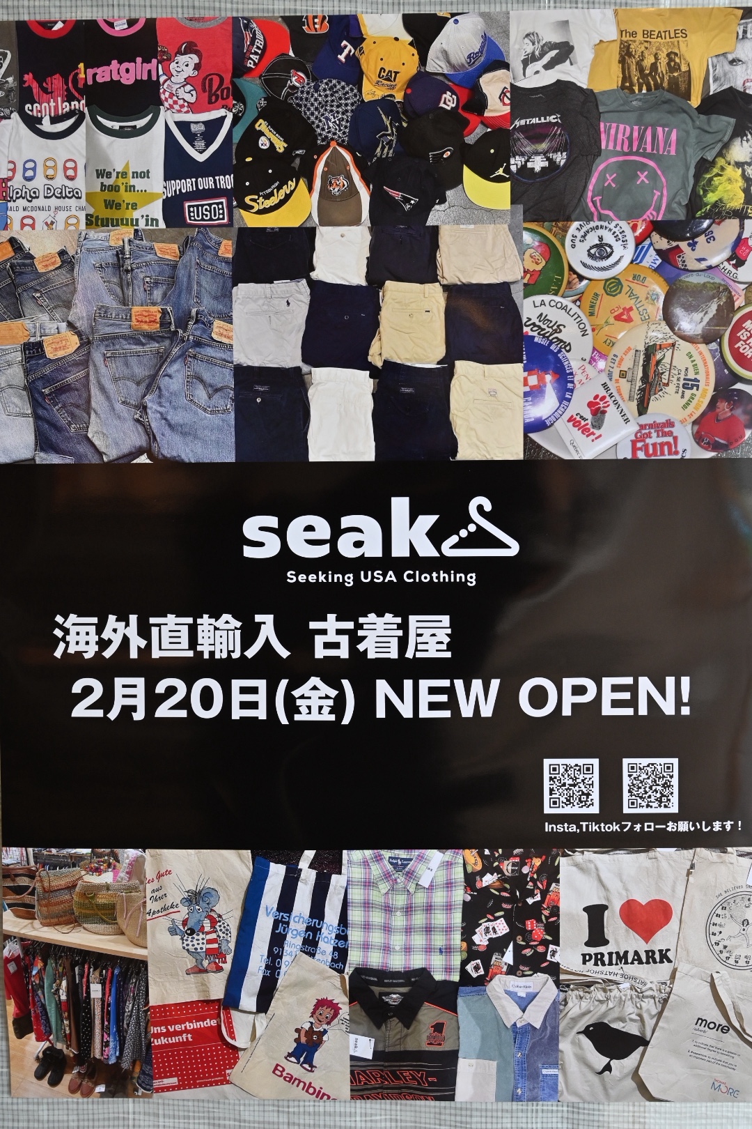 2/20(金)、みのおキューズモール1階にseakっていう海外直輸入の古着屋さんがオープンするようです!