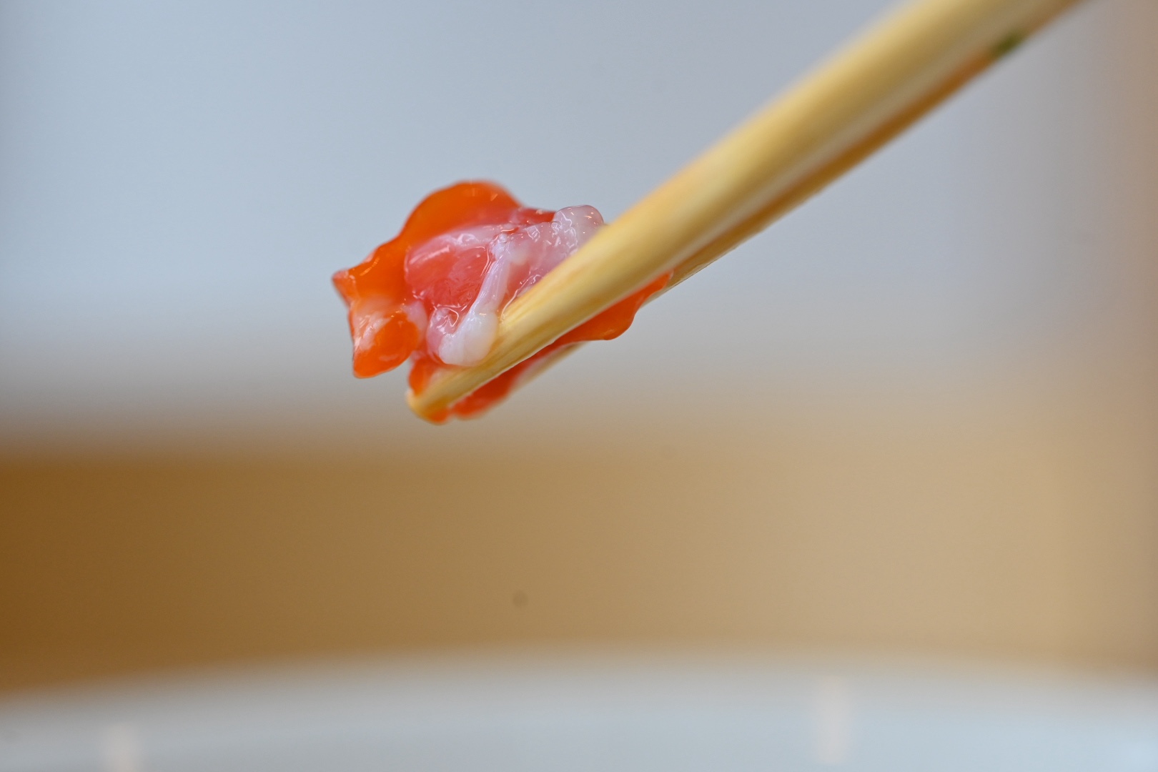撮影用に左手で箸を持って掴むと、ツルツル滑ってなかなかうまく撮れません。
