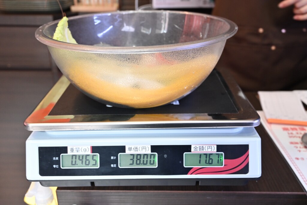 レジに秤があるのでボウルごと乗っけると料金が自動で出ます。