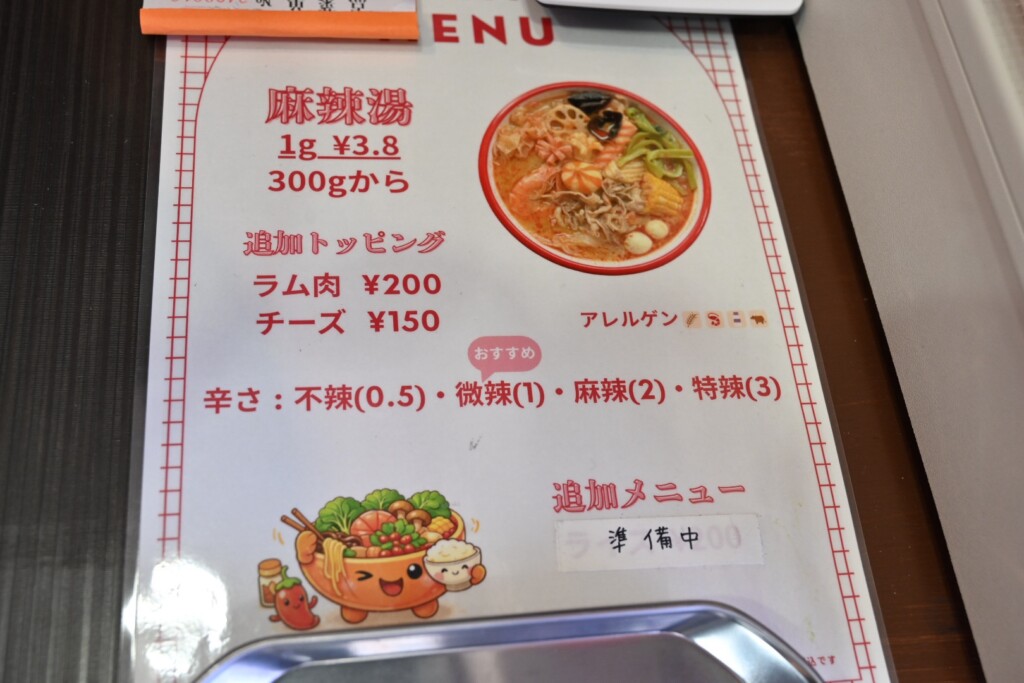 人生で初めて麻辣湯というものを食べましたが、辛いものが苦手な人で十分に食べられる辛さです。