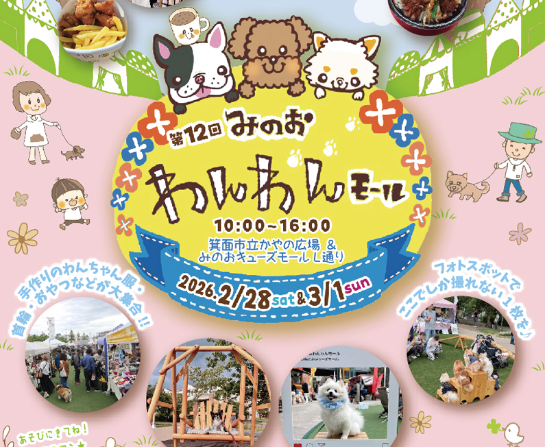 2月28日(土)、3月1日(日)、箕面市立かやの広場 & キューズステージ周辺第12回 みのおわんわんモールが開催されるようです!