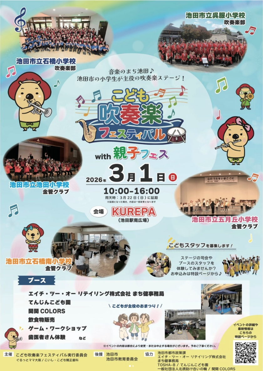 3/1(日)、池田駅前のKUREPAで【こども吹奏楽フェスティバルwith親子フェス】が開催されるようです!