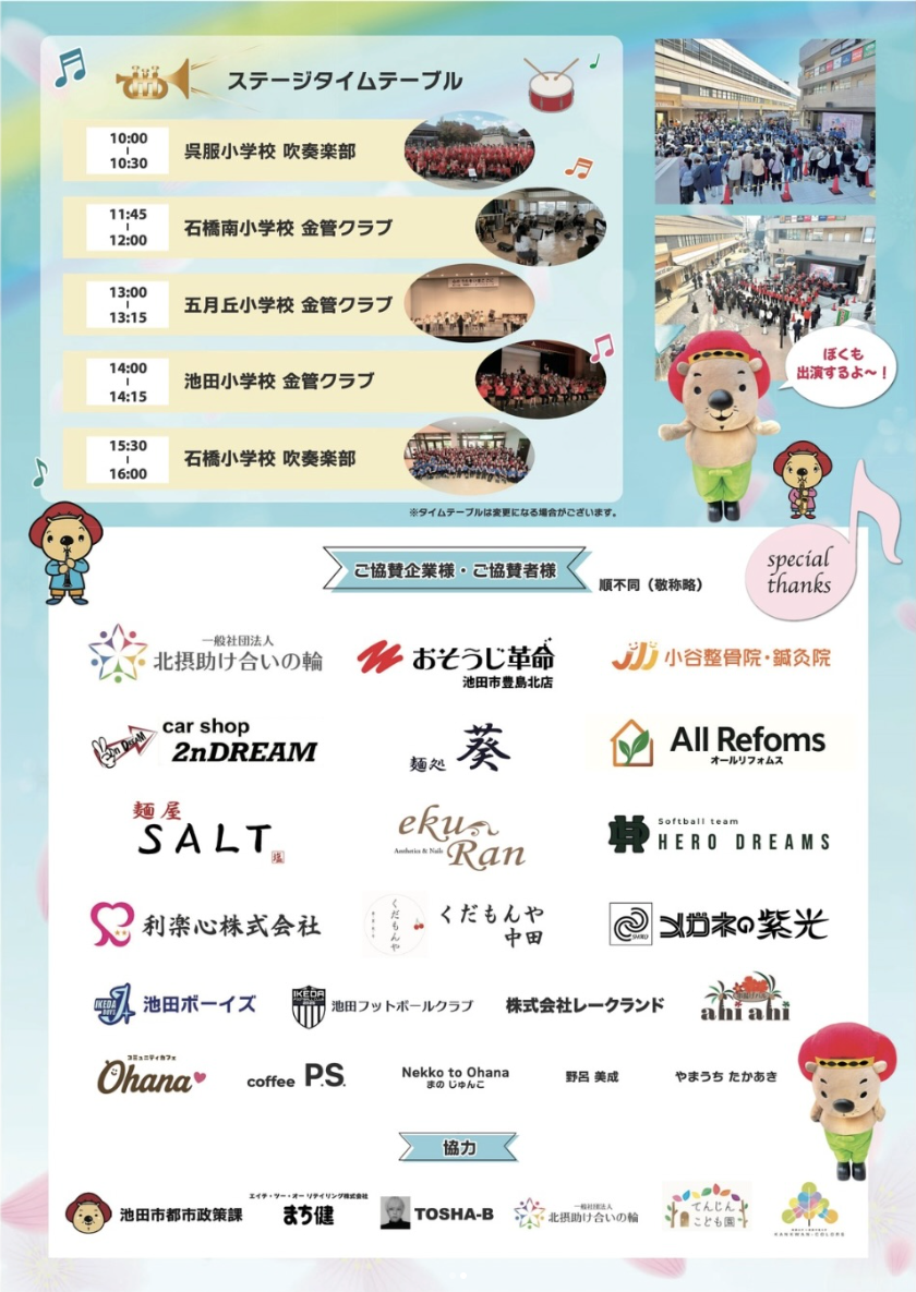 池田市の全ての小学校には吹奏楽・金管クラブがあるそうで、その特色を生かし、このイベントでは上記の市内5つのクラブが出演。