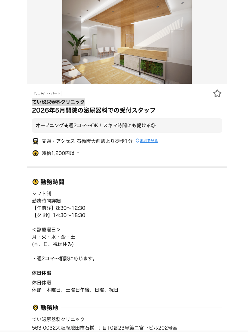 タウンワークの求人情報によると、石橋1-10-23第二宮下ビル2階に、てい泌尿器科クリニックがオープン予定。