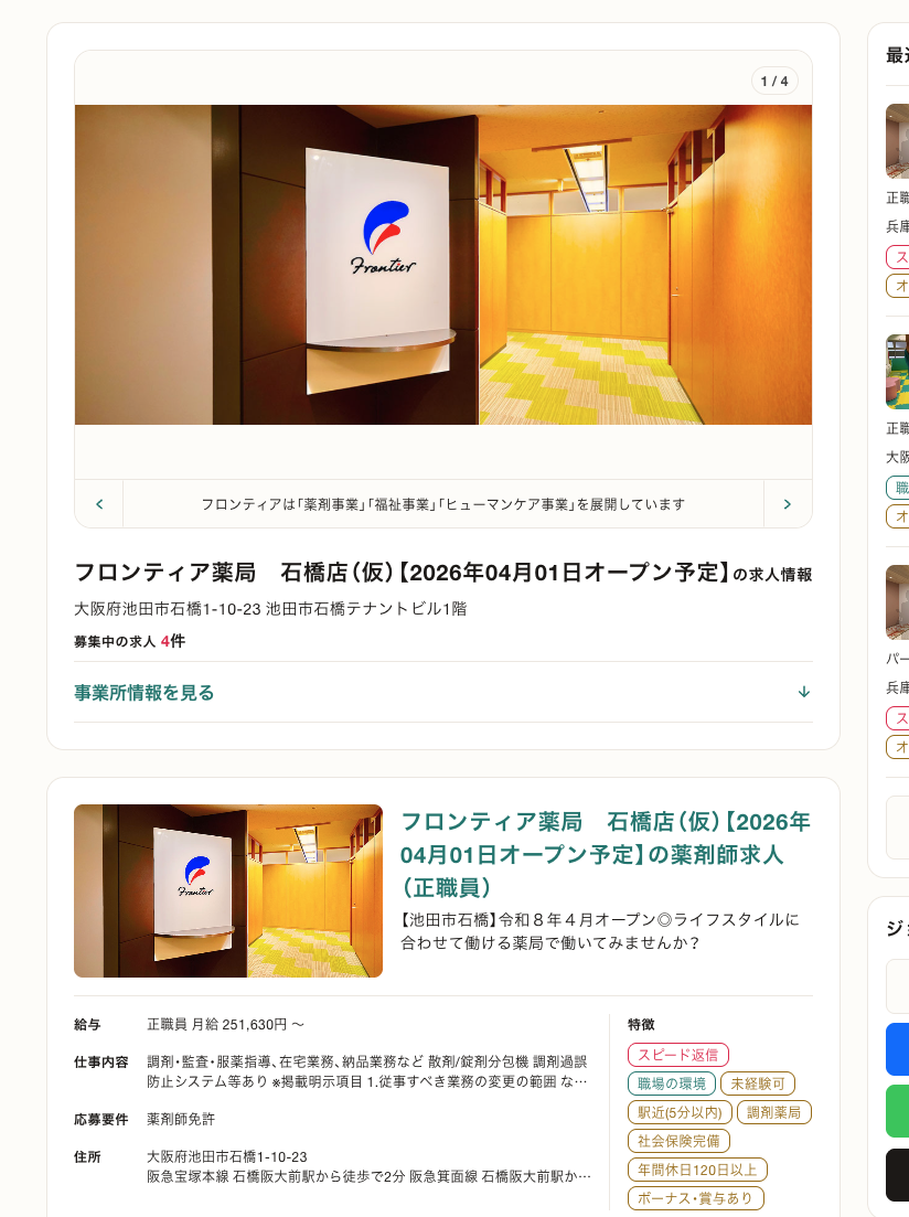 求人情報によると、4月1日には同じビルにフロンティア薬局という薬局も入るようですね。
