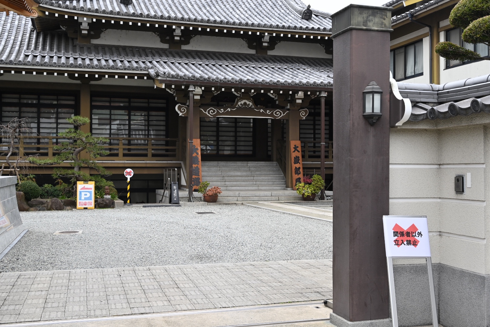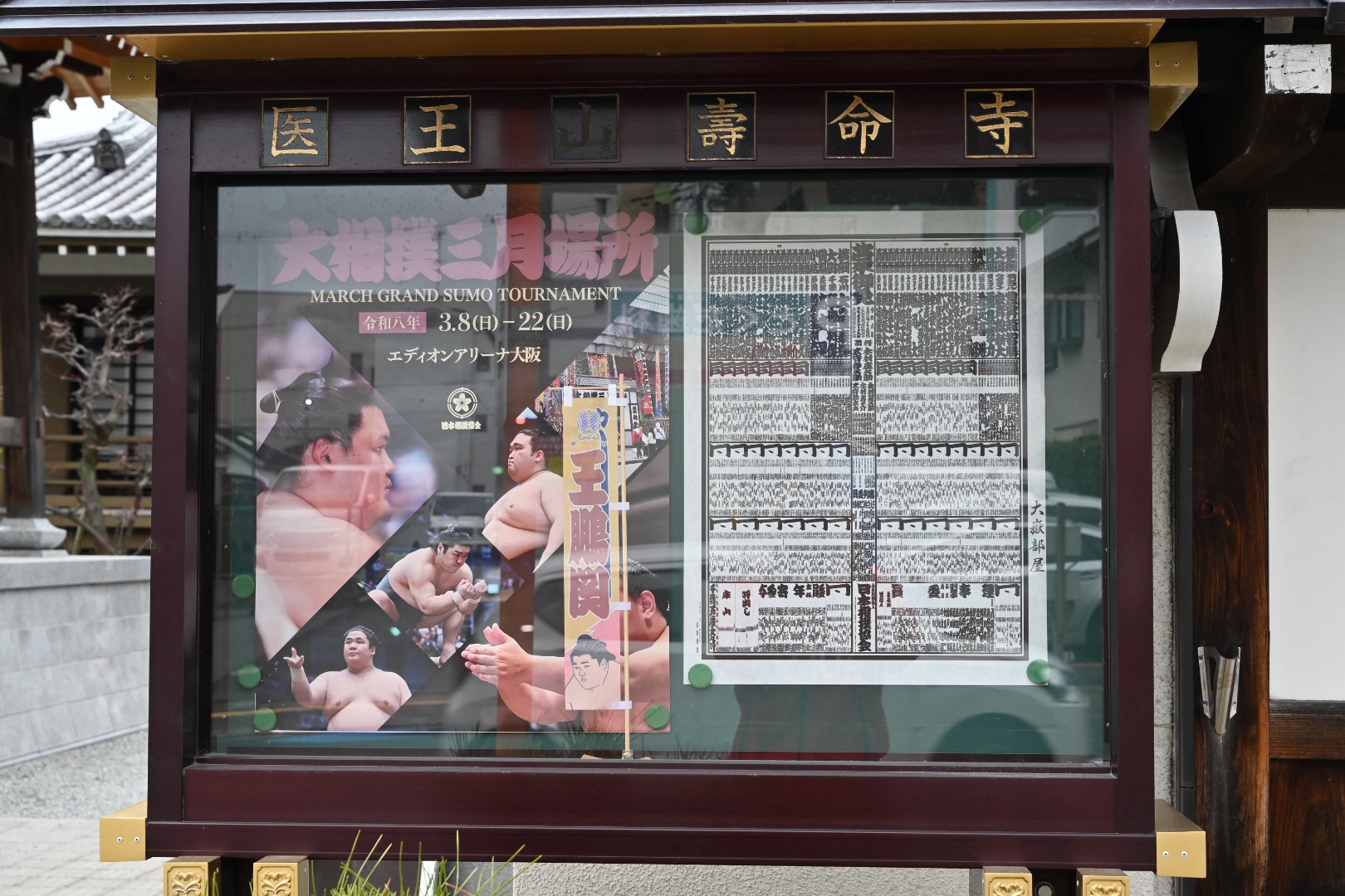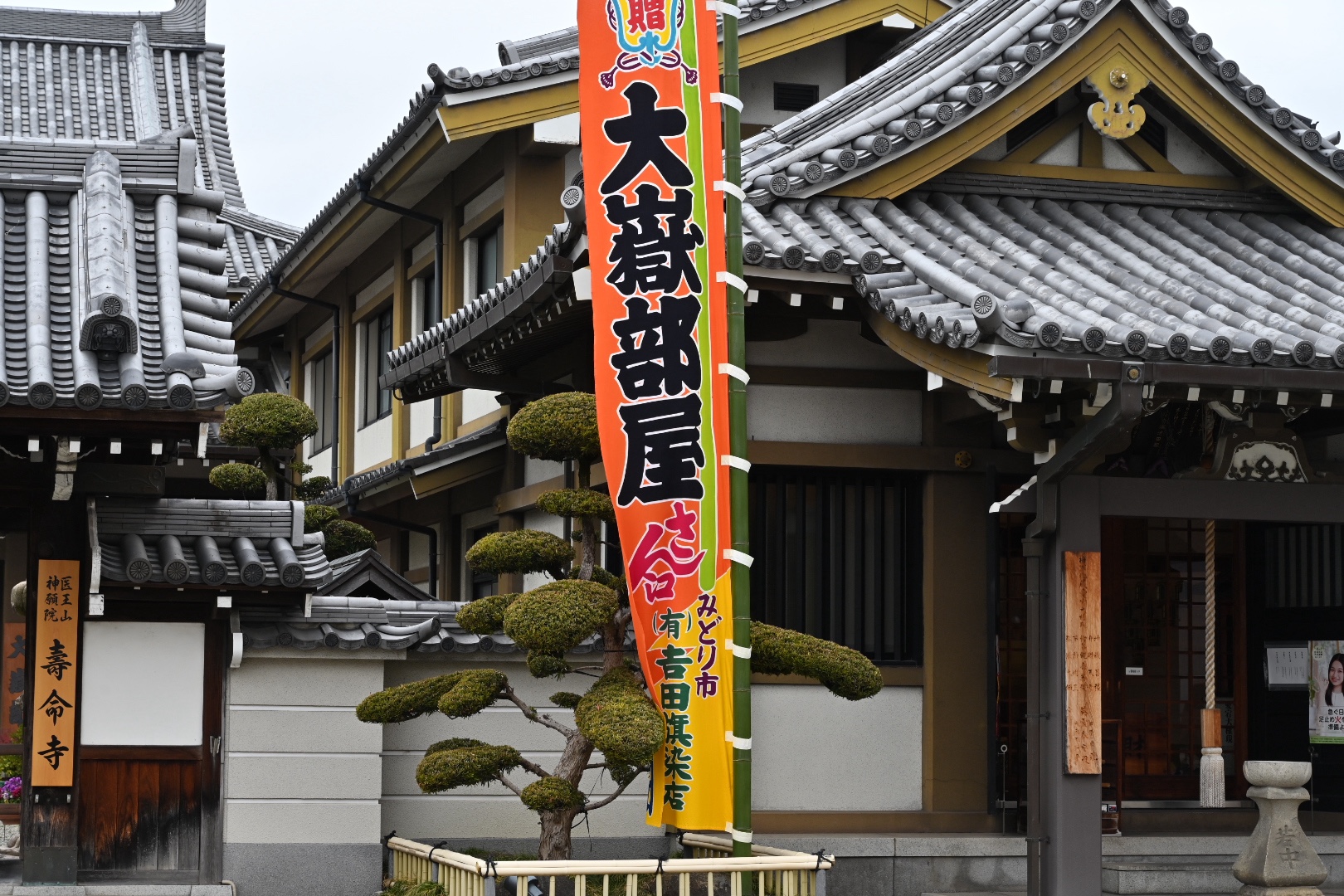 お寺の前には「大獄部屋さん」というでっかいノボリが立っています。