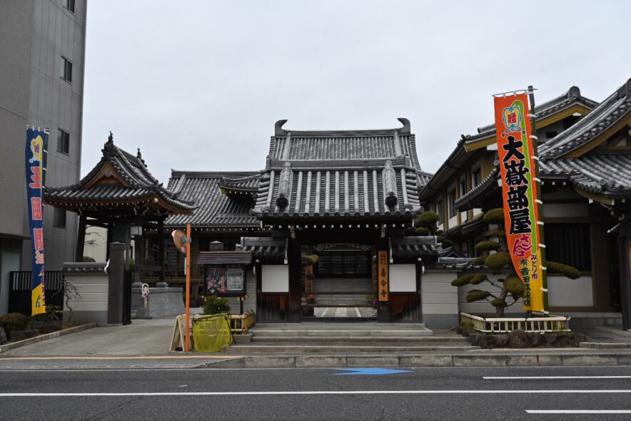 お寺の前には「大獄部屋さん」というでっかいノボリが立っています。