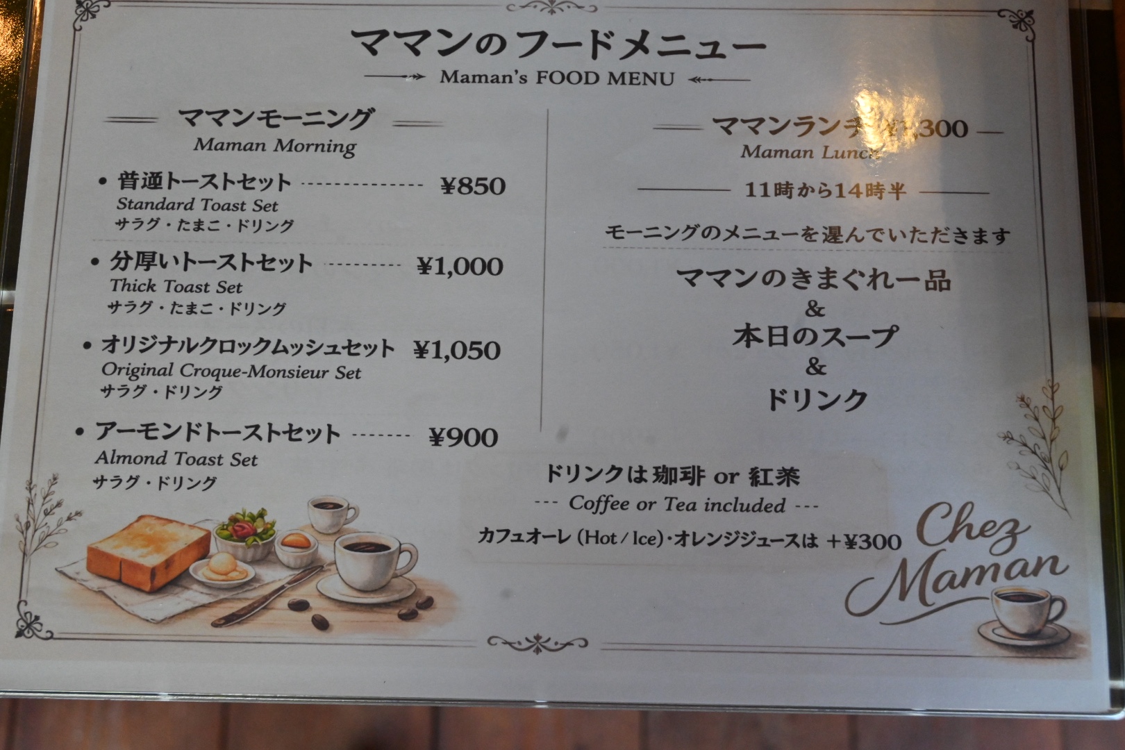 ランチは左のママンモーニングにハンバーグが追加されるとの事。