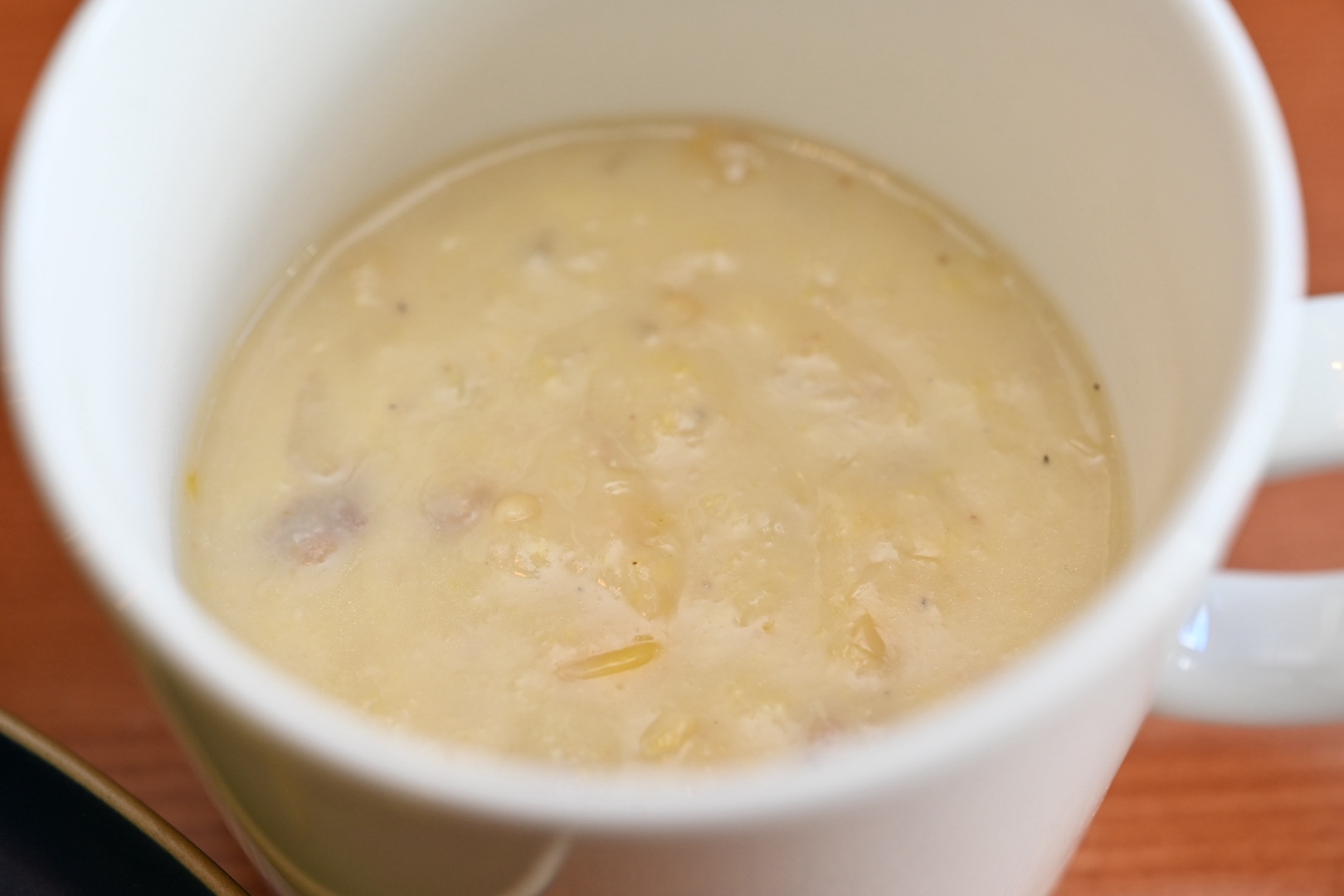 コーン、玉ねぎ、ひき肉などが入って「塩胡椒で味付けしただけ」だそうですが、甘みと旨みがギュッ!と凝縮されていて、かなり美味しい。