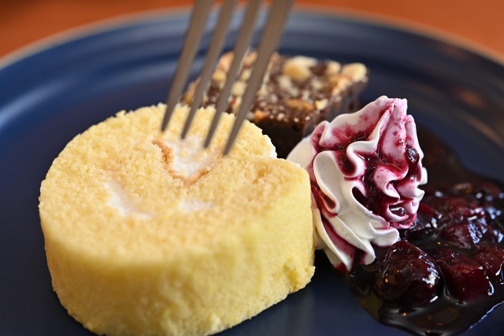 せっせと撮影→食べる→撮影→食べる、を繰り返していると、「これもよかったらどうぞ!」とケーキを頂きました。
