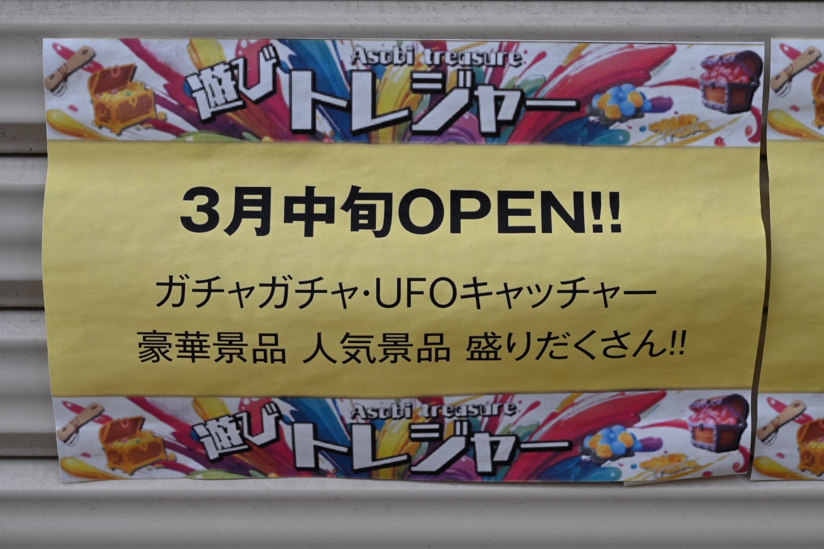 遊びトレジャーという名前で、3月中旬オープン予定。