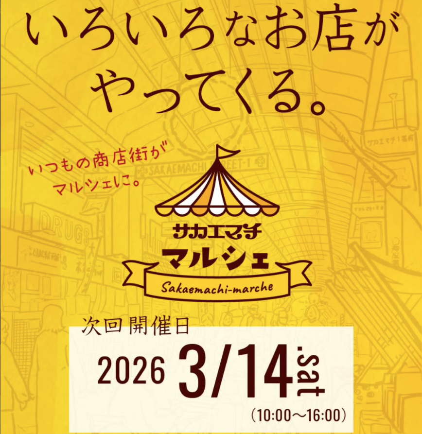 3/14(土)、池田市のサカエマチ1番街でサカエマチマルシェが開催されるようです!