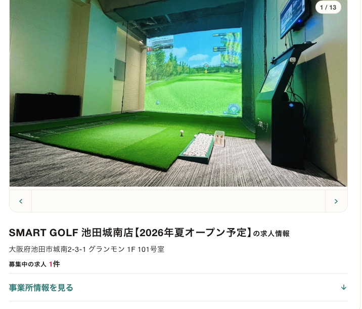 求人情報によると、2026年夏にSMART GOLF池田城南店がオープン予定。