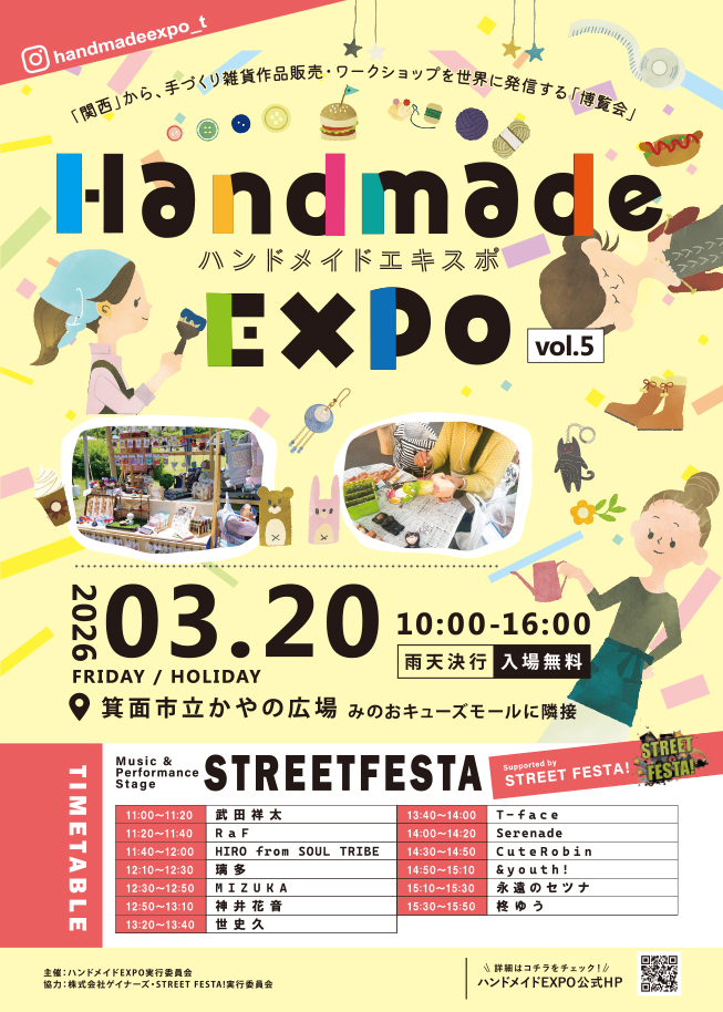 1. 3/20(金)、みのおキューズモールでハンドメイドエキスポvol.5が開催されるみたい。