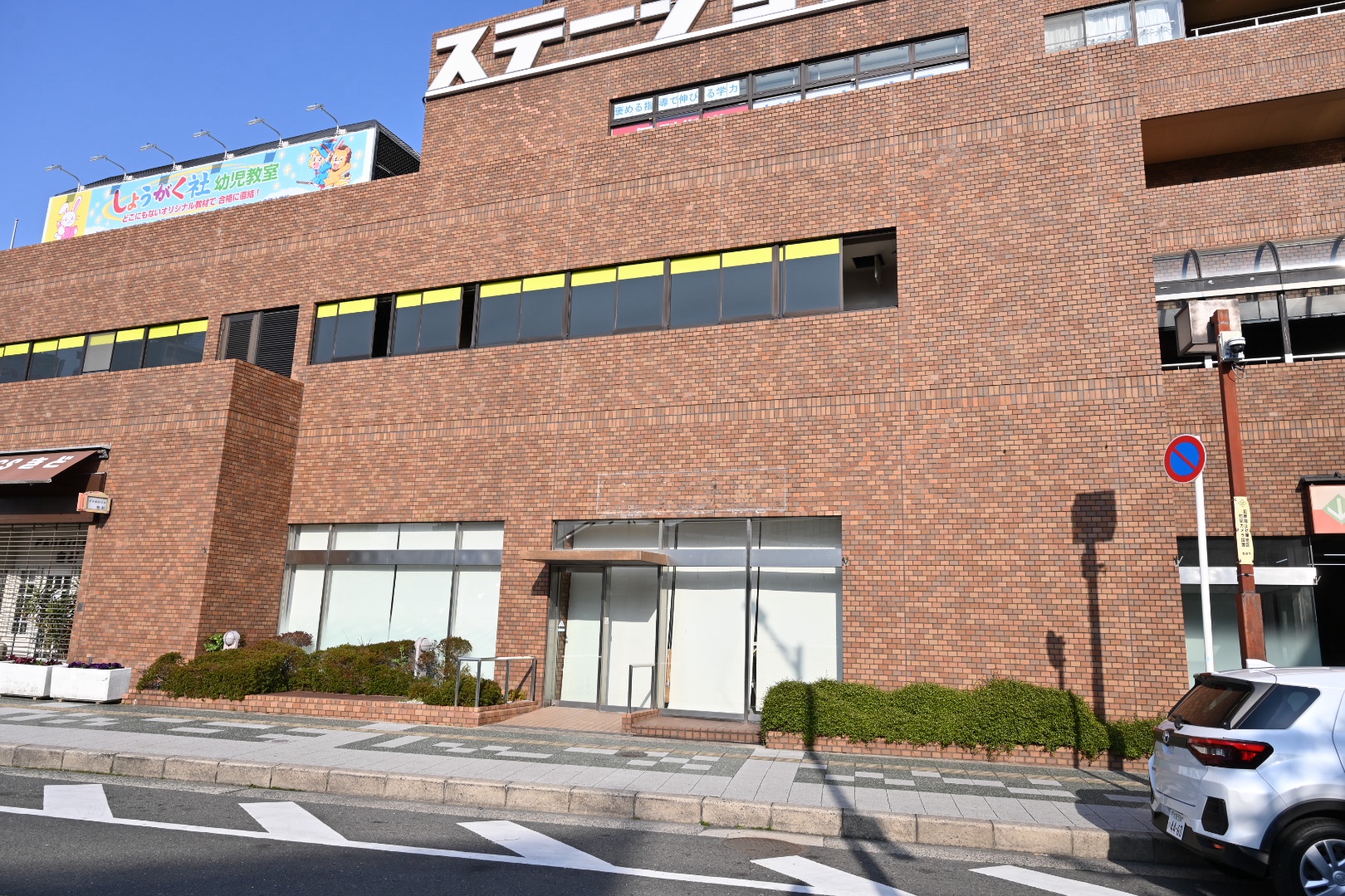 ビル西側に回ると、2階の窓も黄色くラッピングされてますね。