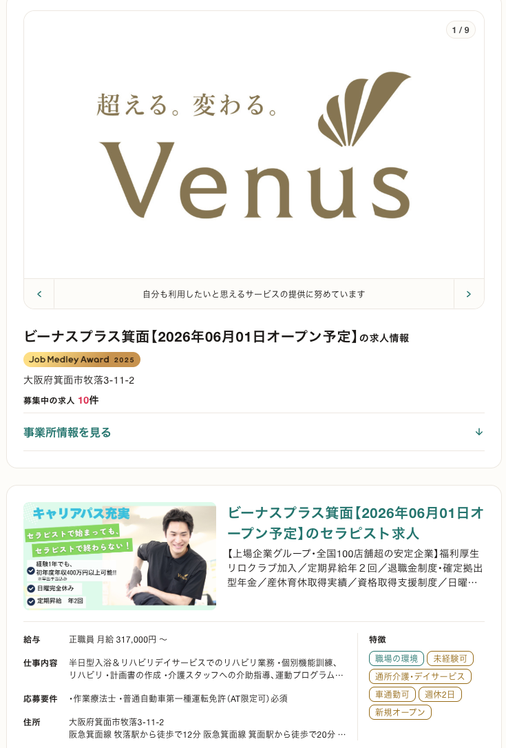 求人情報によると、ビーナスプラス箕面という半日入浴&リハビリデイサービスの事業所が牧落にオープン予定。