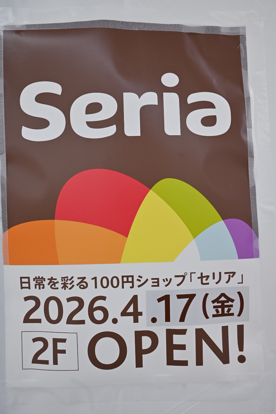 エスカレーターで2階に上がると、目の前にSeriaオープンの告知が。
