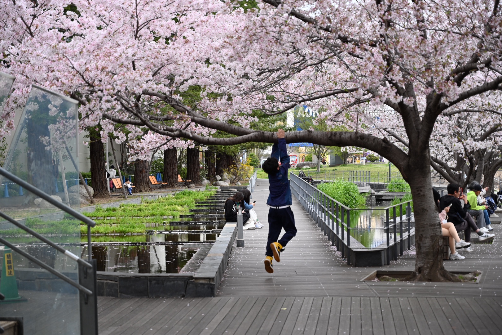 桜がそろそろ散り始めていますが、その前にみのおキューズモールの桜を見てきました!