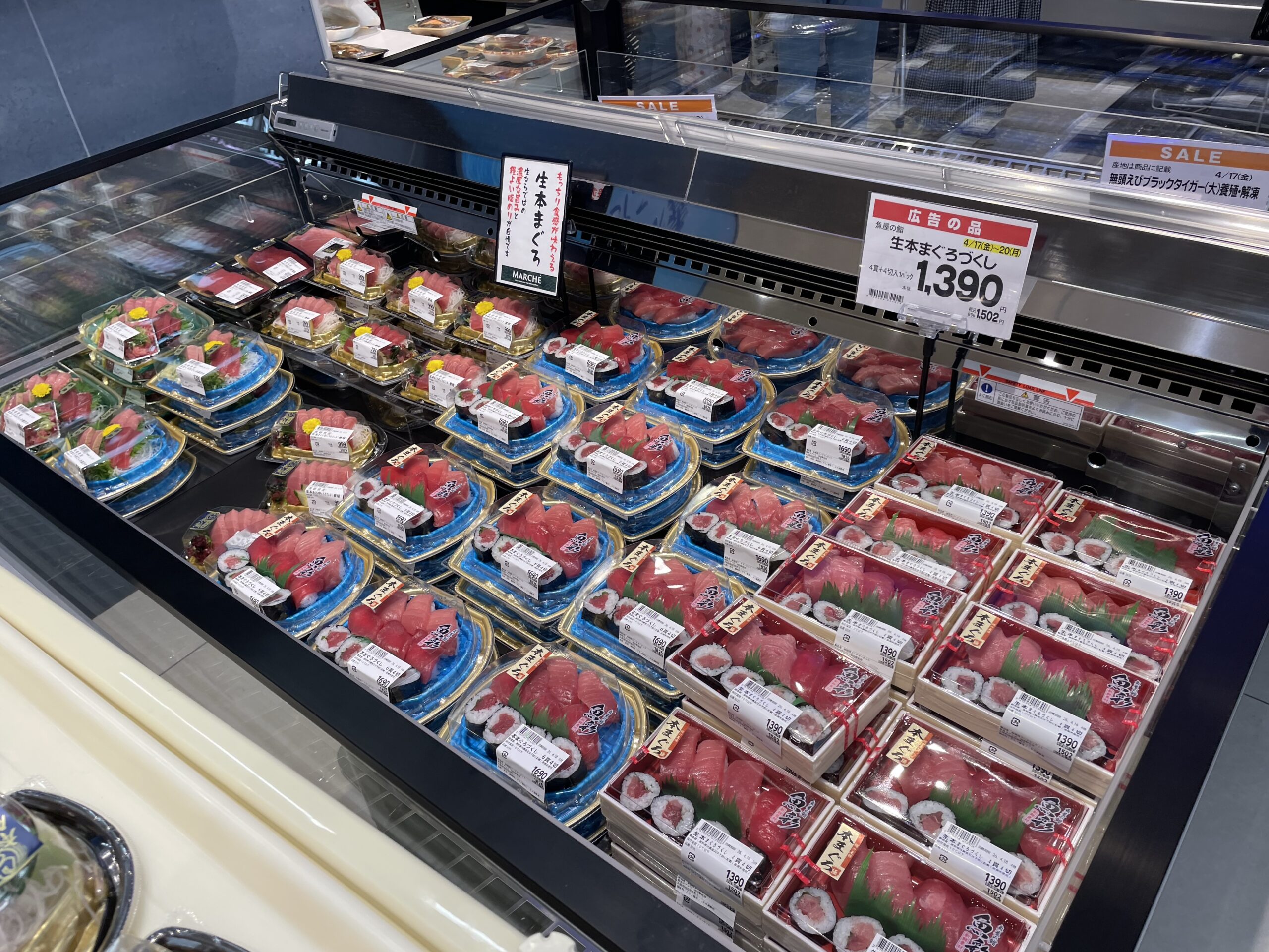 生本マグロのコーナーが圧巻。