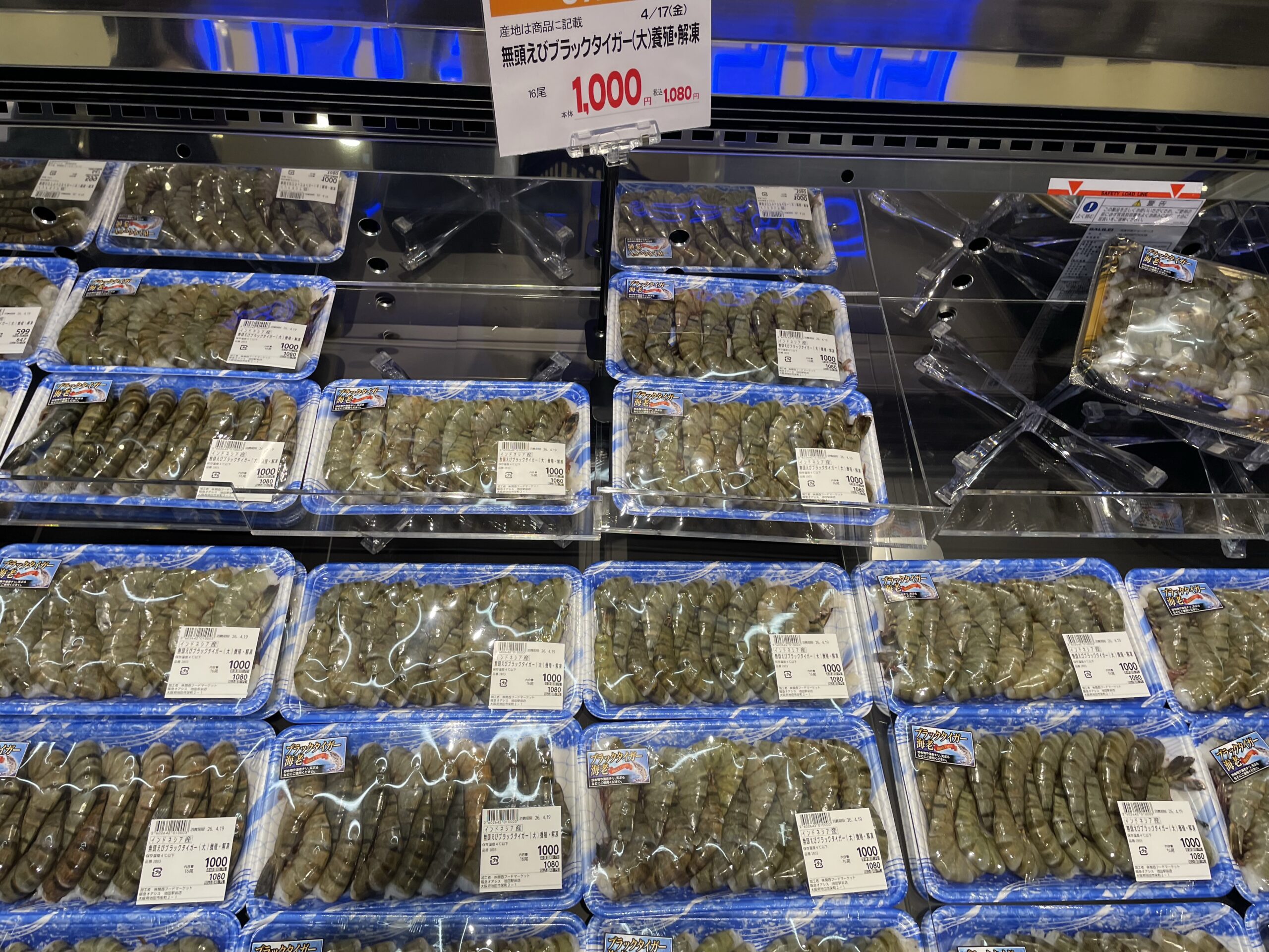インドネシア産無頭ブラックタイガー16尾で1000円。