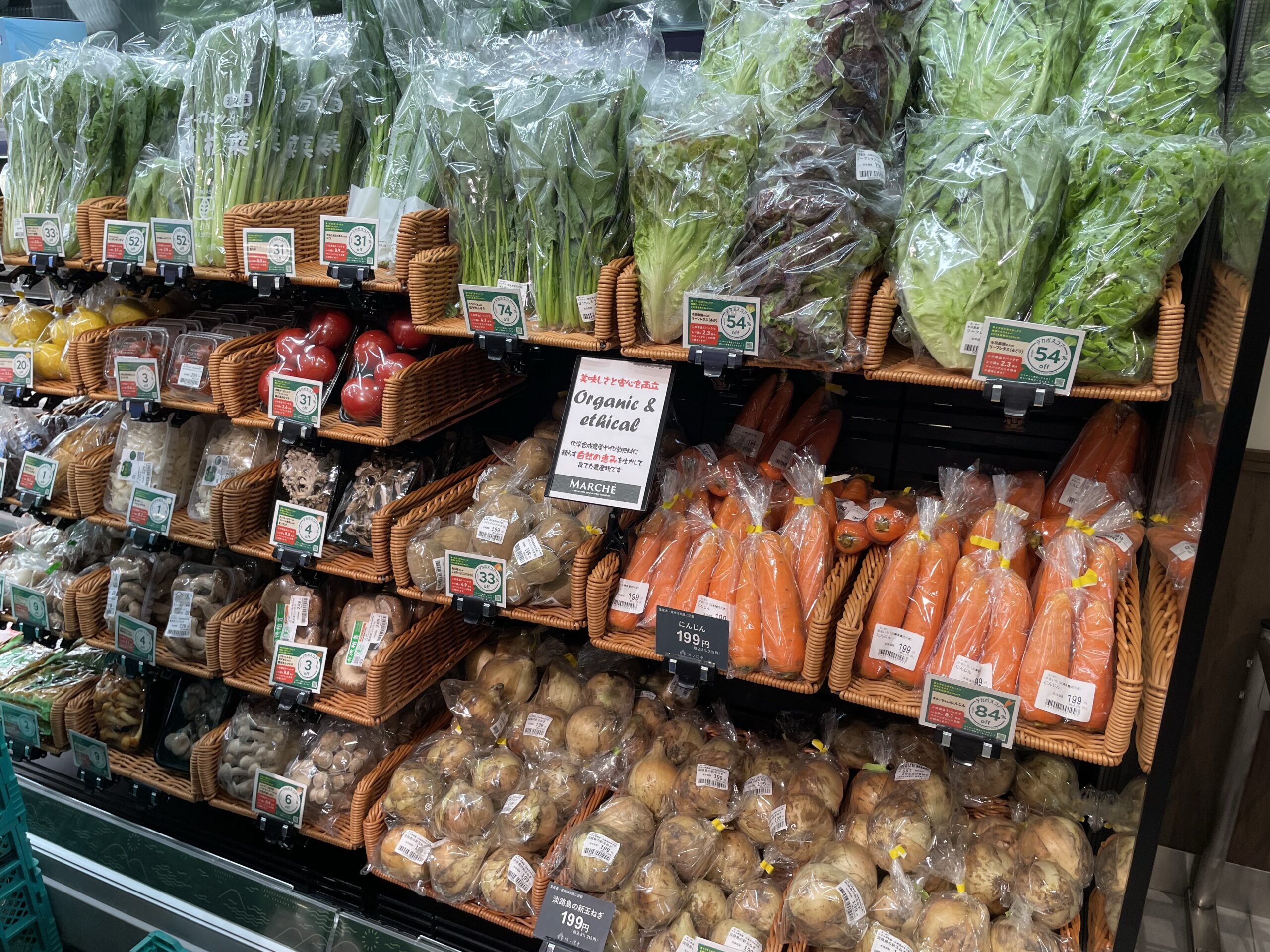 入ってすぐには野菜コーナーで、これは多くの阪急オアシスと同じ構造です。