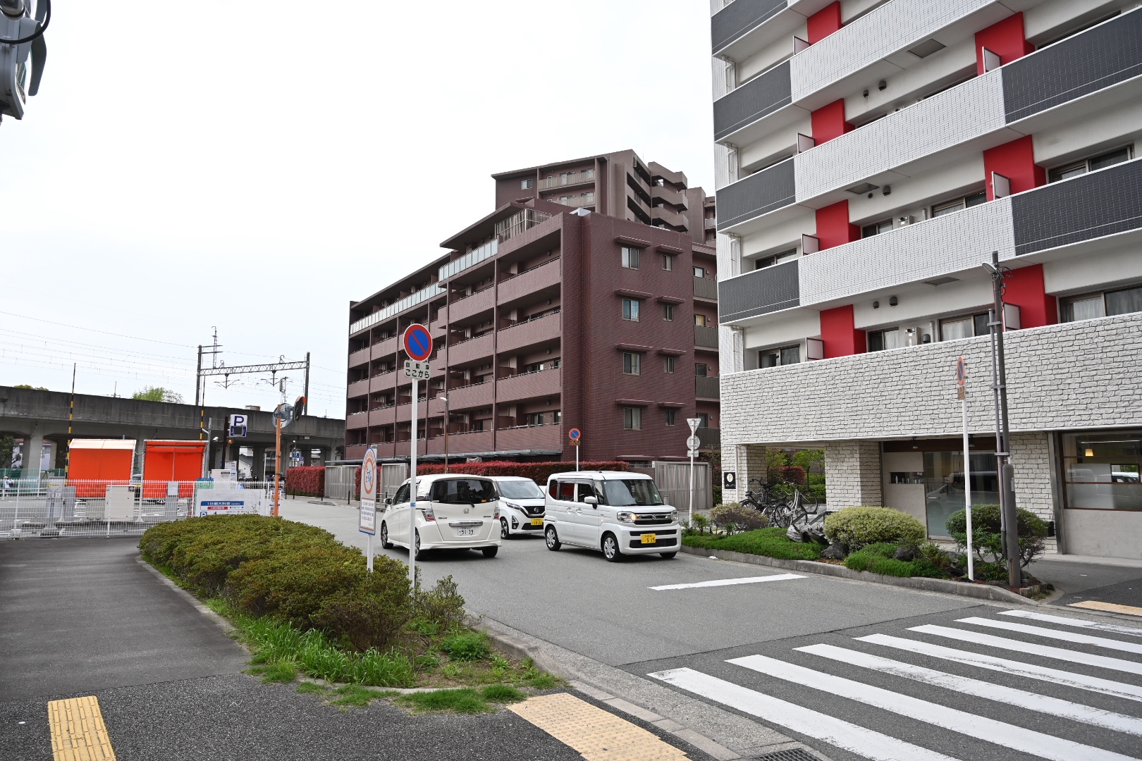 線路沿いに通路ができていて、ここから入口にアクセス可能になっています。