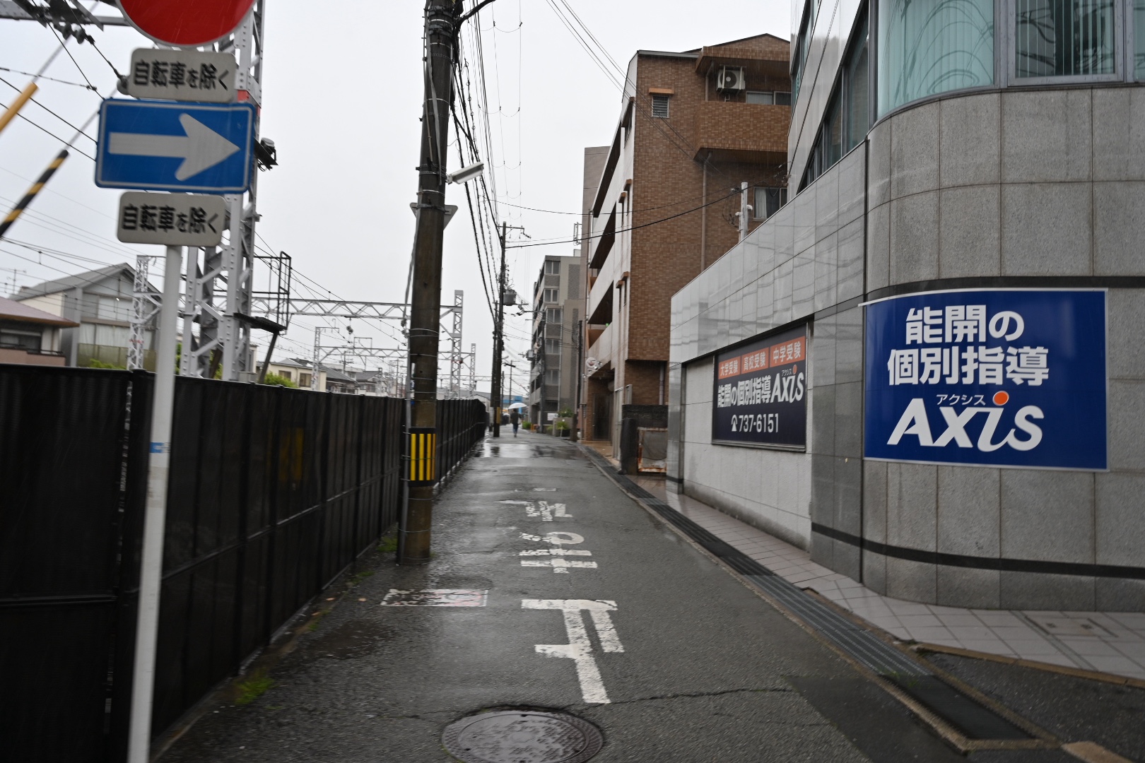 石橋阪大前駅の東口からまっすぐ進んで、ここを右へ。